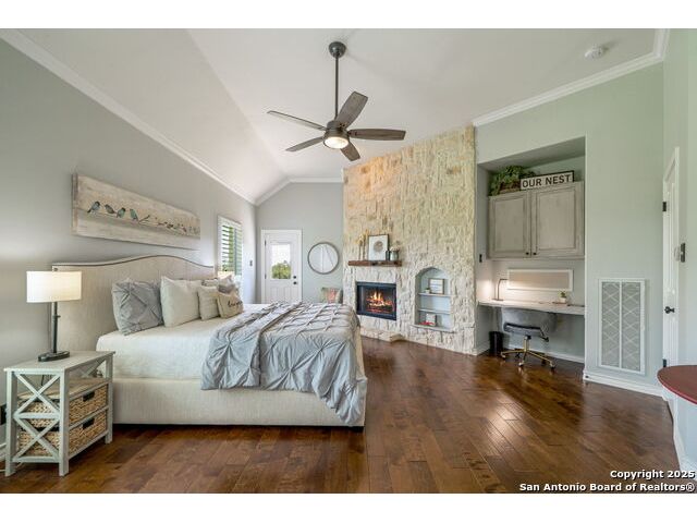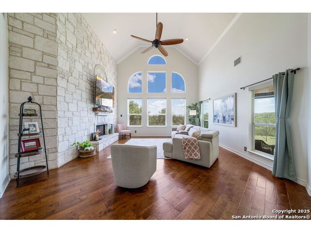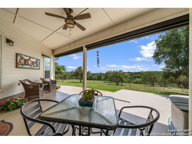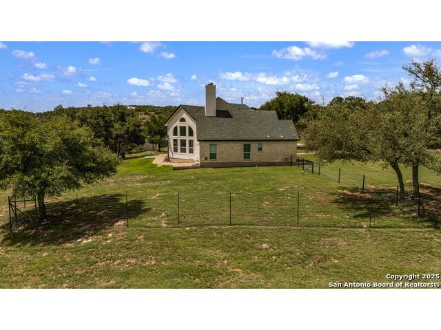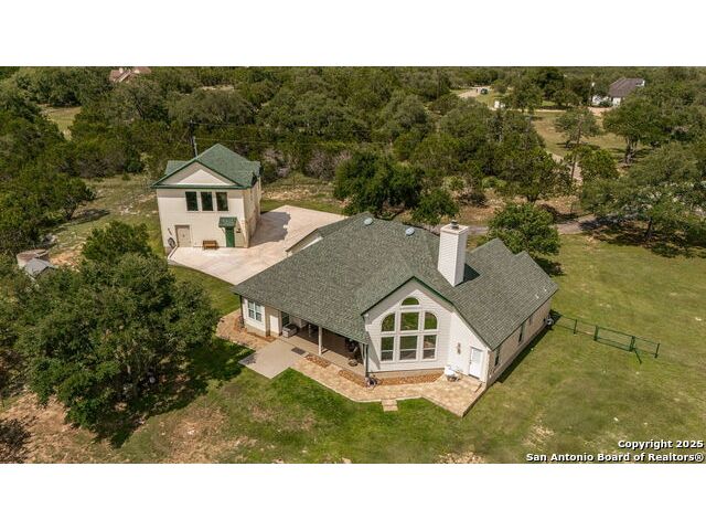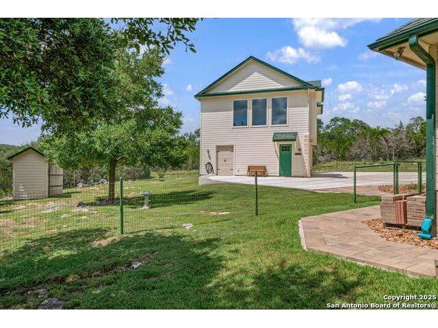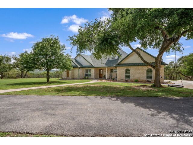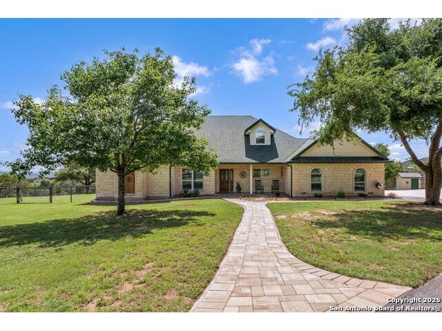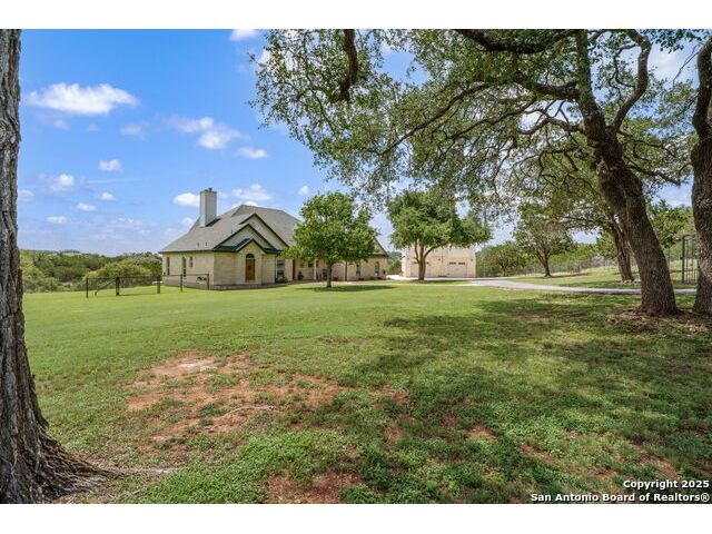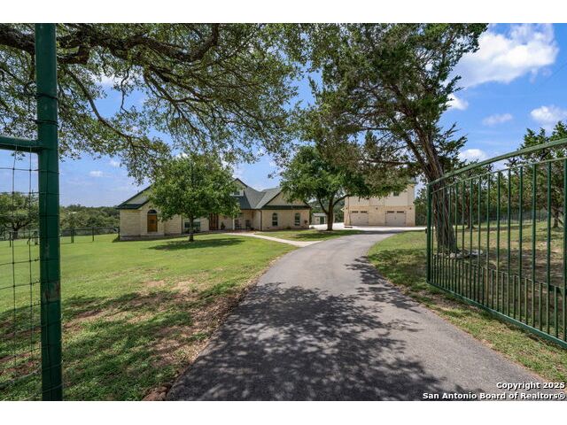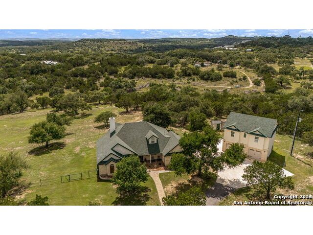 Fully fenced Horse Property includes a gorgeous Hill Country home with Guest House on 7.13 park-like acres and has so much to offer! The 2,486 sq. ft. main house has been totally remodeled, including an island Kitchen with quartz counters, farmhouse sink, shiplap backsplash & stainless appliances. The owners retreat features a cozy fireplace & a totally remodeled bath with stand alone tub, spacious shower, his & hers closets, shiplap & a barn door. The living room boasts a floor-to-ceiling rock wall with fireplace & a two story wall of windows with expansive views of the surrounding countryside. The home is a single story with only one private bedroom upstairs with its own full bath & spacious walk-in closet. A designated Study completes the package! The Guest House has approx. 872 sq.ft and was completed in 2024. It features a modern Kitchen with quartz counters, Living Room with towering windows with hill country views, 1 bdrm, 1 bath & a bonus room with work space & bunk beds. Perfect for the multi-generational family or beautifully set up for an Airbnb! Guest house is also equipped with a 26KW Generac generator, powered by a 1,000 gallon buried propane tank and is connected to the well so there will be no loss of power or water during freezes or power outages! Four garage spaces provide lots of room for all of your toys & two come equipped with charging stations for your electric cars. One of the garage bays makes the perfect workshop with its own 1/2 bath & a side overhead door for ventilation. The oversized 800GPD Aerobic Septic system was installed in 2023 & the well comes with a 3,750 gallon storage tank. The private 7.13 acre property with wet weather creek is fully fenced including a separate fence & automatic gate surrounding the homes and has been beautifully maintained. Bring your horses! All of this and no HOA, plus fantastic Comal County schools and easy access to everything San Antonio or New Braunfels has to offer! Bring your horses!