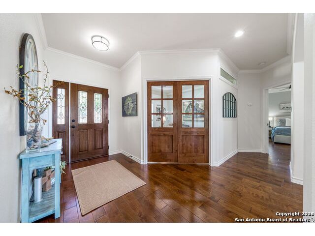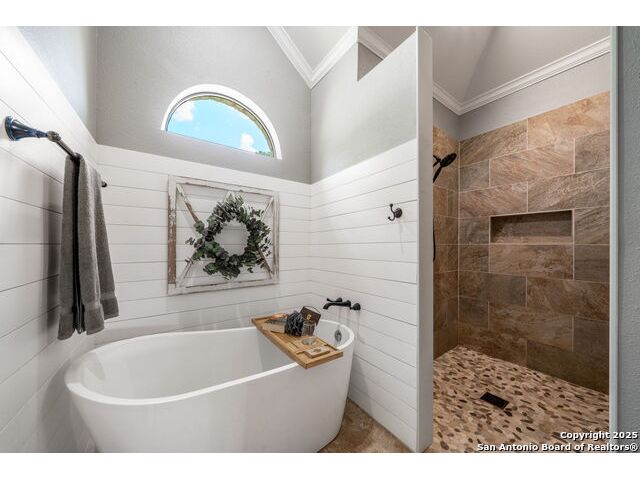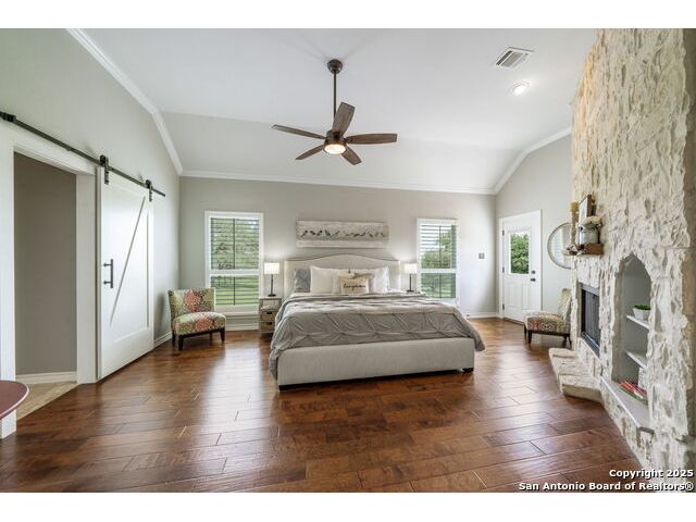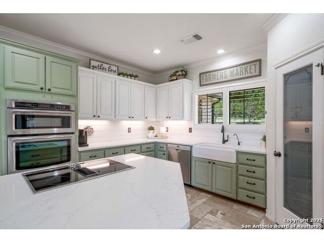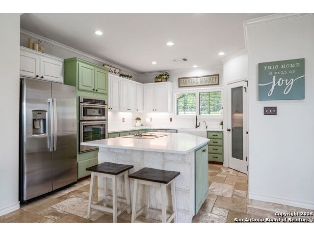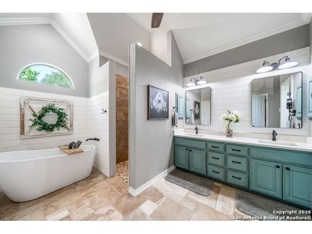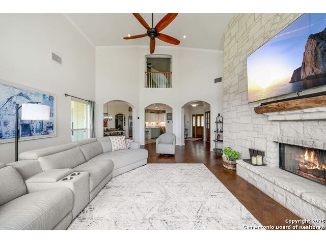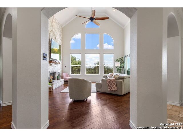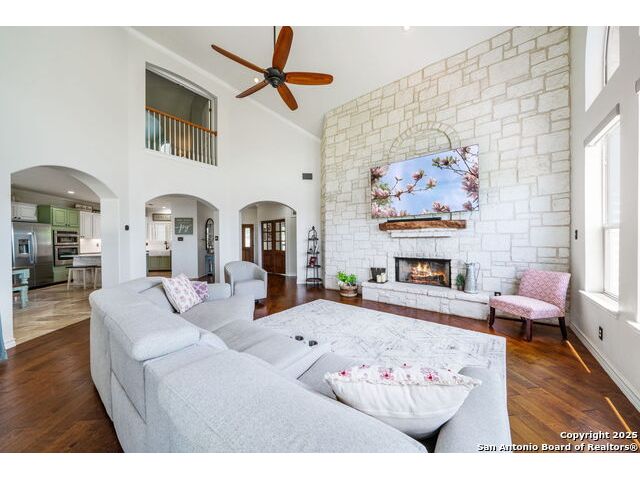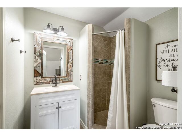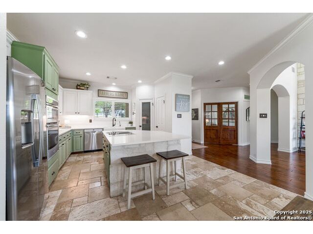 Fully fenced Horse Property includes a gorgeous Hill Country home with Guest House on 7.13 park-like acres and has so much to offer! The 2,486 sq. ft. main house has been totally remodeled, including an island Kitchen with quartz counters, farmhouse sink, shiplap backsplash & stainless appliances. The owners retreat features a cozy fireplace & a totally remodeled bath with stand alone tub, spacious shower, his & hers closets, shiplap & a barn door. The living room boasts a floor-to-ceiling rock wall with fireplace & a two story wall of windows with expansive views of the surrounding countryside. The home is a single story with only one private bedroom upstairs with its own full bath & spacious walk-in closet. A designated Study completes the package! The Guest House has approx. 872 sq.ft and was completed in 2024. It features a modern Kitchen with quartz counters, Living Room with towering windows with hill country views, 1 bdrm, 1 bath & a bonus room with work space & bunk beds. Perfect for the multi-generational family or beautifully set up for an Airbnb! Guest house is also equipped with a 26KW Generac generator, powered by a 1,000 gallon buried propane tank and is connected to the well so there will be no loss of power or water during freezes or power outages! Four garage spaces provide lots of room for all of your toys & two come equipped with charging stations for your electric cars. One of the garage bays makes the perfect workshop with its own 1/2 bath & a side overhead door for ventilation. The oversized 800GPD Aerobic Septic system was installed in 2023 & the well comes with a 3,750 gallon storage tank. The private 7.13 acre property with wet weather creek is fully fenced including a separate fence & automatic gate surrounding the homes and has been beautifully maintained. Bring your horses! All of this and no HOA, plus fantastic Comal County schools and easy access to everything San Antonio or New Braunfels has to offer! Bring your horses!