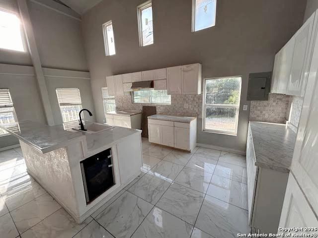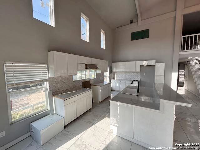 Lake Medina Shores, Check out this 5 bedroom, 2 bath approx. 2,400 square feet on half an acre, Open kitchen with Island and breakfast bar overlooking large living room with 20 foot high vaulted ceilings, Ceramic tile flooring, 2 bedrooms and a full bath downstairs, plus a dining area and additional living area. Upstairs offers, good sized Primary bedroom with walk in closet and full bath, two additional rooms that can be used as bedrooms with no closets, full bathroom in hallway adjacent to utility room, vinyl flooring, Home is lacking Septic tank and CHA Units (Duct work and vents are installed) Home is almost complete and would need to go Conventional or cash.