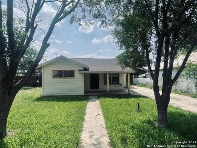 Beautifully updated 3-bedroom, 1-bath home in the heart of Carrizo Springs! This fully remodeled home now features a brand new roof, updated electrical with recessed lighting, updated plumbing, and new windows throughout. Fresh interior and exterior paint, updated flooring, and new landscaping give the property great curb appeal and a welcoming feel inside and out. The stylish kitchen includes new cabinetry, countertops, and modern brass hardware and fixtures, plus a designated dining area and spacious living room. Sitting on a well-maintained lot with mature trees and a peaceful backyard, this move-in ready home is conveniently located near the hospital, schools, and shopping.