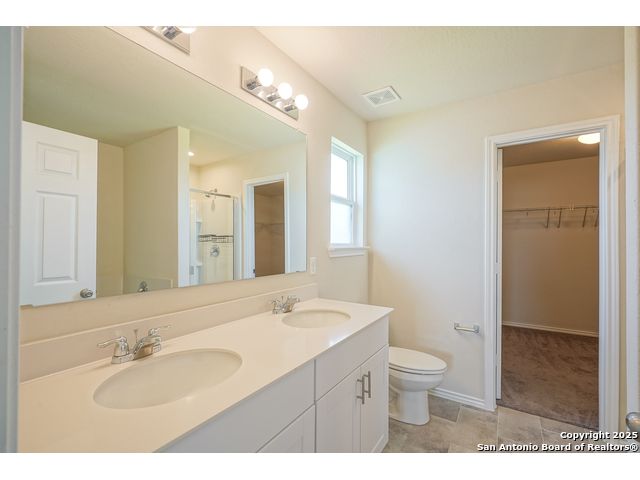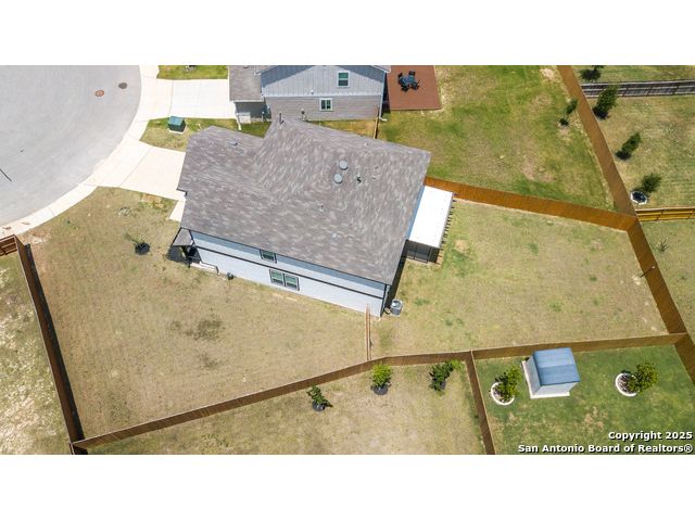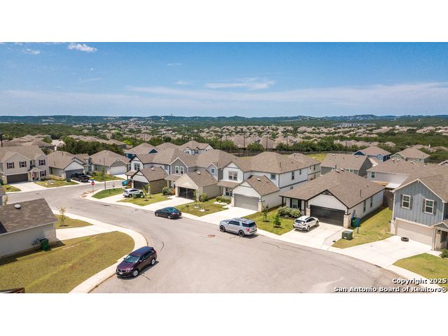 Perched atop a hill on a sprawling cul-de-sac lot in prestigious Hills at Cielo Ranch, this gorgeous Pulte home is an absolute must see! This fantastic Mesilla floorplan features a spacious bedroom and a full bathroom downstairs, PLUS a study with glass french doors! You'll find recently installed luxury Pergo flooring downstairs and 9' ceilings! The kitchen is a chef's delight - with cabinets galore, gas cooking, upgraded cabinets & granite countertops, and a huge island with a breakfast bar! The primary retreat upstairs features a tray ceiling, garden tub with separate shower, and a massive walk in closet! Be sure to take in the view from the game room windows upstairs, you can see for miles!! Make your way out back to be wowed by the gigantic back yard - which you can relax and enjoy comfortably (and mosquito free) from the sensational screened-in covered patio! This is one you won't want to miss, check out the virtual tour and schedule your showing asap!