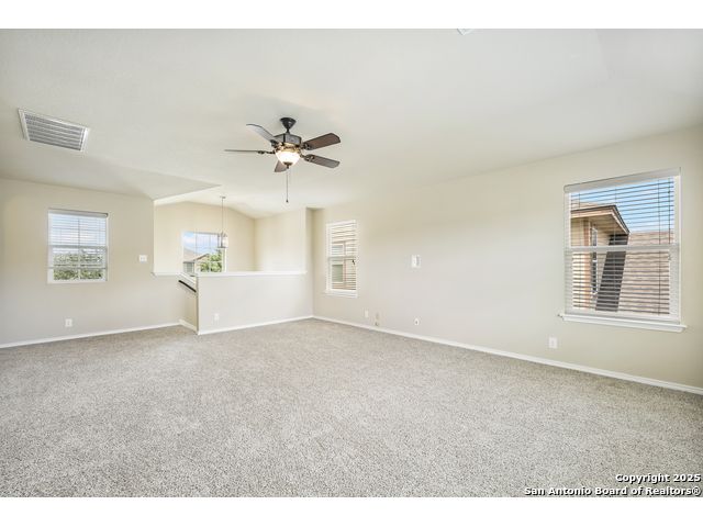 Updates galore! Welcome home! Charming 3 bedroom, 2.5 bath home in Boerne Hollow. New HVAC, fresh paint, new carpet and more. This home is move-in ready for you! Open floor plan with convenient kitchen with granite countertops and an eat-at bar keeps you in the action. Second living area upstairs offers a private retreat. Oversized patio area in your freshly sod back yard gives entertaining options too! Nice sized primary and two bedrooms and upstairs, plus a second living area complete this lovely home.