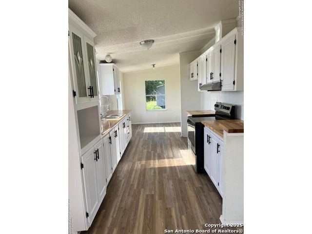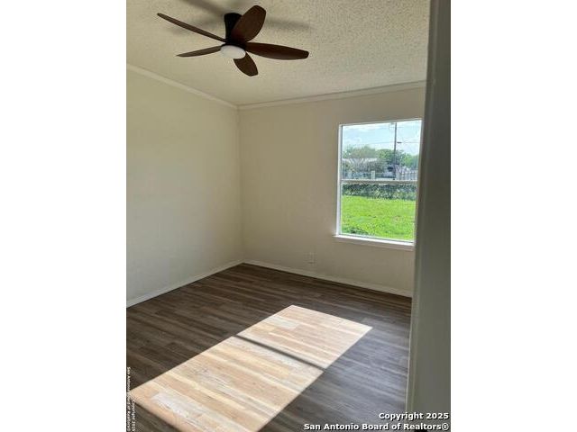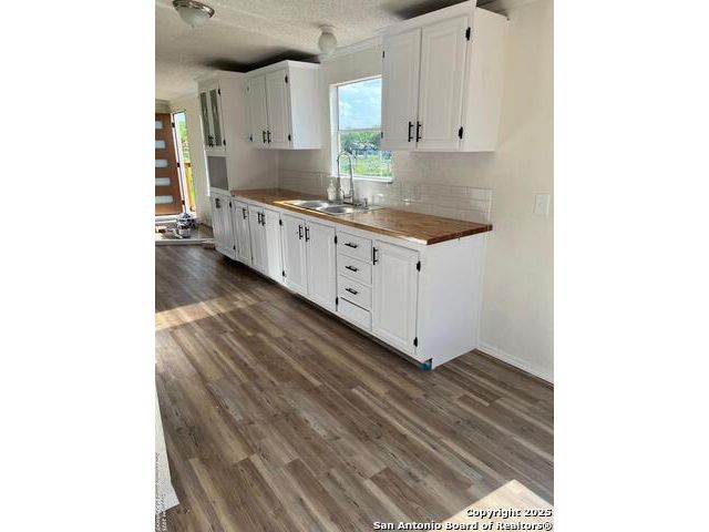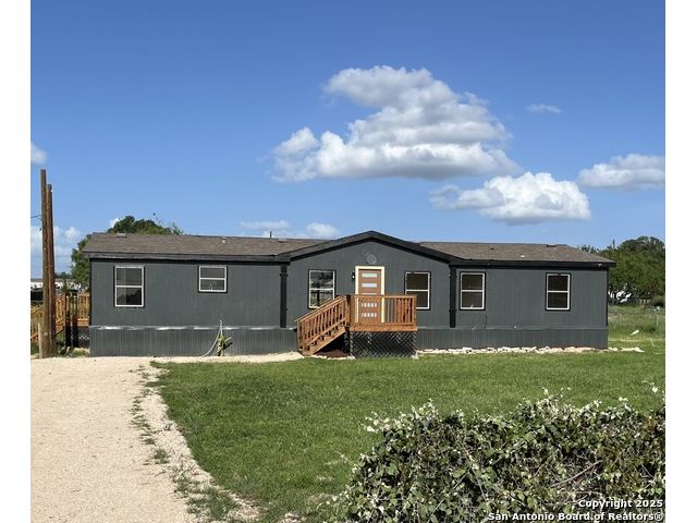 Welcome to this beautifully updated 4-bedroom, 3-bathroom manufactured home on a spacious 0.6-acre lot. This 2000 Palm Harbor home offers 1,749 square feet of living space, a split floor plan, and a flexible layout designed for both comfort and function. Recent Updates Include: *New flooring throughout *Fresh interior and exterior paint *Updated lighting and ceiling fans *New front and back porches *Newly tiled walk-in shower in the primary suite *Butcher block kitchen countertops *Dedicated home office or flex room off the secondary bedrooms and full bath This home features a large primary suite with private bath, a separate wing with three bedrooms and a full bath, and a private office space that adds versatility. Ideal for working from home, remote learning, or hobby use. Enjoy the outdoor space with mature trees, a large yard with blooming yellow wildflowers, and plenty of room for entertaining, gardening, or future expansion. Additional Highlights: Title to mobile home is being retired to land; property will be classified as real property HUD Labels: PFS0649332 / PFS0649333 Just 15 minutes to the Toyota plant, with easy access to south San Antonio and major highways This home combines modern updates, land ownership, and a family-friendly floor plan-offering a rare opportunity at an accessible price point.