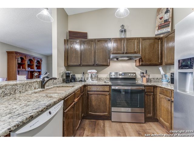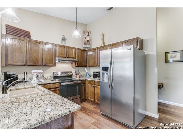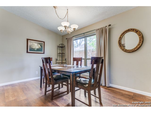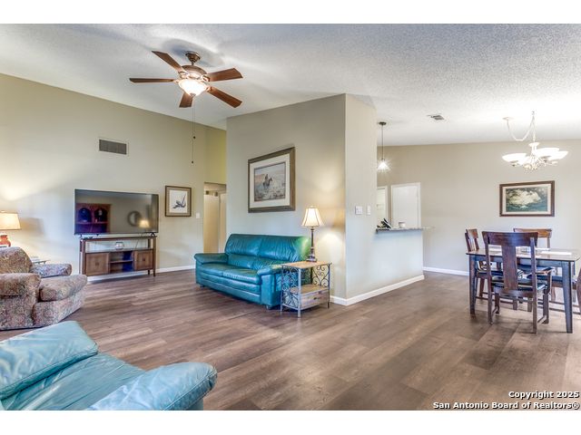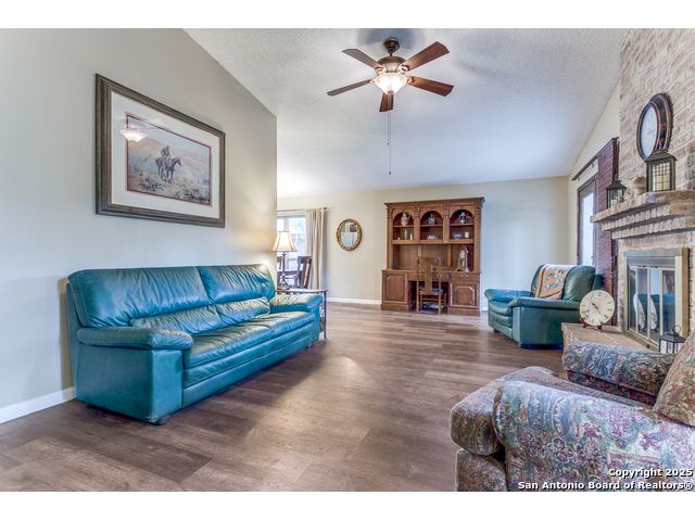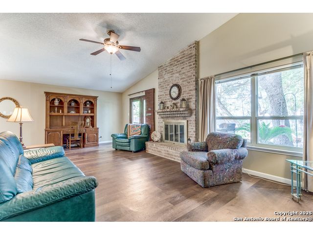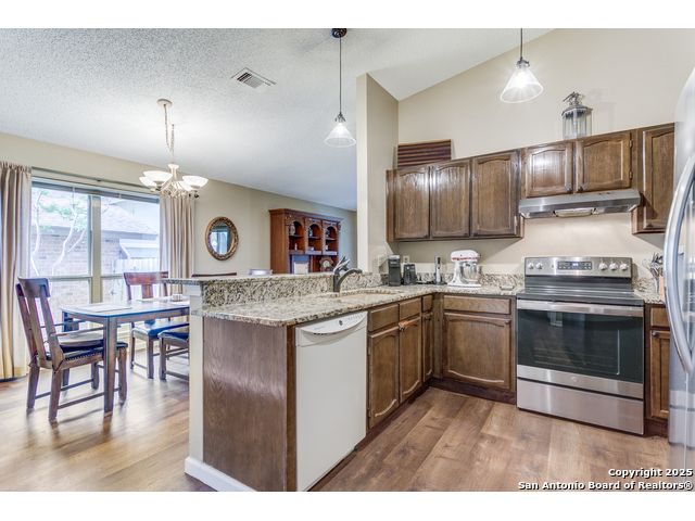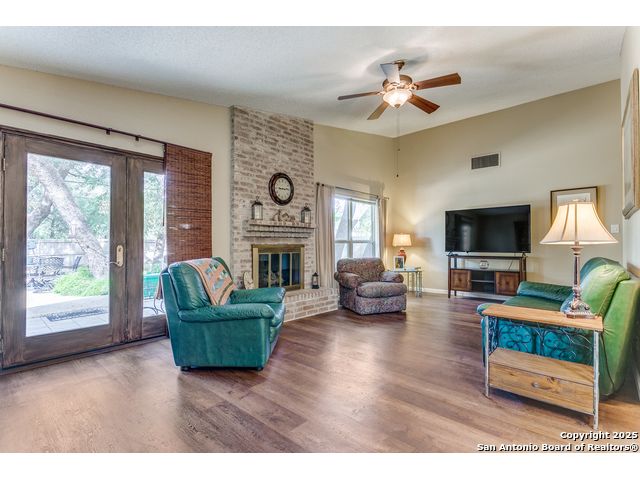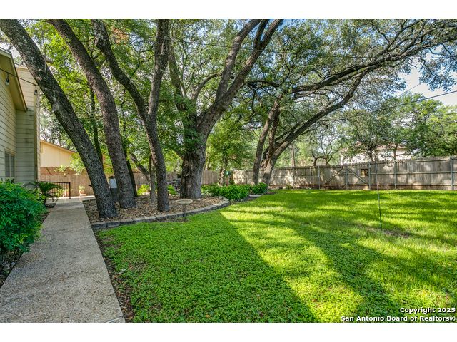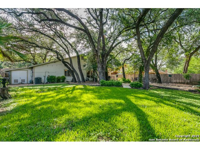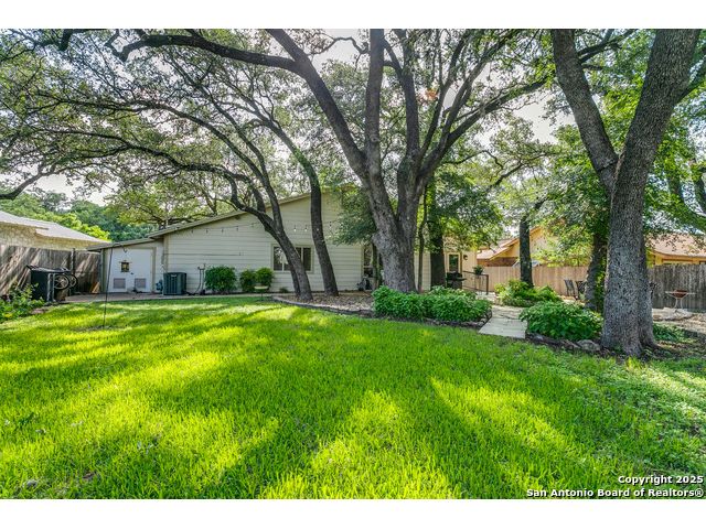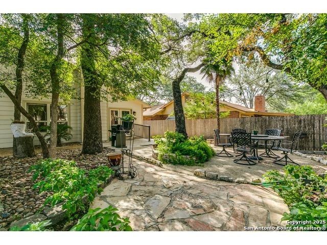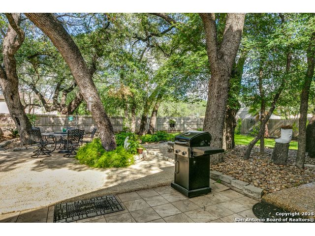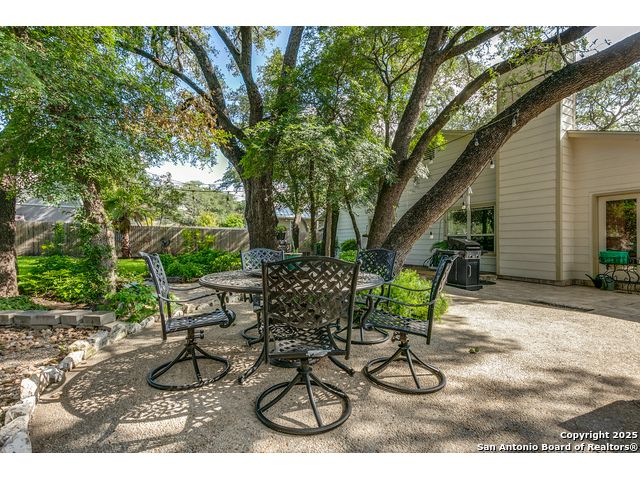 $5,000 seller concessions is being offered to help buyers with closing costs or rate buy-down! Sitting on a generous sized lot, 1406 Aylsbury St offers space, comfort, and charm in a prime San Antonio location. This well-cared-for 3-bedroom, 2-bathroom home has great bones and thoughtful updates throughout-including a new roof in 2024, a new electric water heater installed in May 2023, and a meticulously maintained HVAC system. Step inside to find a spacious kitchen featuring granite countertops, stainless steel appliances, and a brand-new range (2024). The kitchen offers plenty of cabinet space and flows seamlessly into the dining area, ideal for meals or entertaining guests. Around the corner, the living room offers soaring ceilings, tons of natural light, and a cozy brick fireplace as the centerpiece. French doors lead out to the backyard, blending indoor comfort with outdoor living. Down the hall are two guest bedrooms and a full guest bath, along with the primary suite. The primary bathroom is equipped with grab bars and a walk-in shower, making it handicap accessible. The double-pane windows block out exterior noise entirely, creating a peaceful and serene environment inside. The laundry room is off the garage, which also features a convenient workbench for projects or extra storage. Out back, you'll find the true star of the property-a beautifully landscaped yard with mature trees, lush greenery, a privacy fence, a dog run, and a shed. String lights over the patio make this space perfect for relaxing or hosting guests. Location is everything, and this home is just a short drive to the airport, North Star Mall, and your go-to grocery stores, making everyday errands quick and easy. This home offers timeless comfort, smart updates, and an unbeatable backyard. Come see it for yourself!