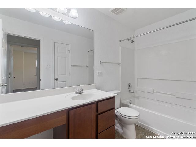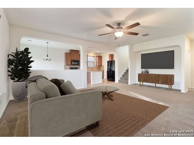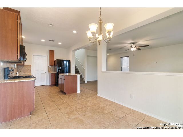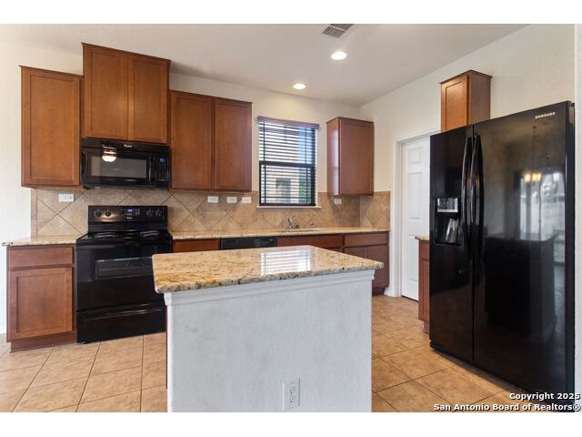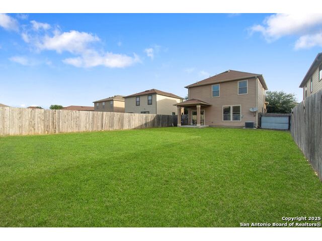 Beautifully Maintained Two-Story Home in the Highly Desirable Mesa Creek Community Welcome to this beautiful, well-kept two-story home nestled in the sought-after Mesa Creek neighborhood. Boasting an open-concept floor plan with tall ceilings, this residence offers a warm and inviting atmosphere perfect for both everyday living and entertaining. Upon entering, you're greeted by a spacious living area that seamlessly flows into the kitchen and dining space, creating the ideal layout for gatherings and family time. The kitchen is a true centerpiece, featuring elegant granite countertops, a large center island, an abundance of cabinet storage, and generous counter space-perfect for cooking enthusiasts and hosting guests. Upstairs, the expansive master suite offers multiple closets and a spa-like ensuite bathroom complete with dual vanities, ample storage, and a large walk-in shower. The secondary bedrooms are generously sized, providing plenty of room for family, guests, or a home office. Step outside to enjoy the covered patio overlooking a huge backyard-an excellent space for outdoor entertaining, play, or even the addition of a future pool. Conveniently located just minutes from Lackland Air Force Base, Loop 1604, Highway 90, H-E-B, and a variety of dining and shopping destinations, this home truly offers the best of comfort, space, and location. Don't miss the opportunity to make this beautiful Mesa Creek property your new home!