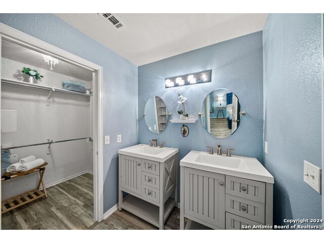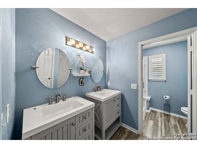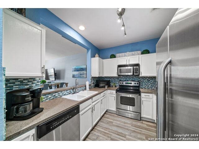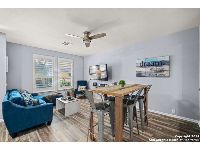 *Available for showings* (previous Airbnb - seller is motivated)! Discover this charming, FULLY FURNISHED, 2-bedroom, 2.5-bathroom home in Northeast San Antonio, a stone's throw away from the North Hills Golf Course and McAllister Park. With nearby shopping and dining, this property boasts convenience and curb appeal. Inside, you'll find a spacious, well-maintained interior that's move-in ready. The light and bright, open floor plan features luxury vinyl plank flooring (no carpet), plantation shutters, ceiling fans, updated bathroom finishes & more! The modern kitchen, equipped with stainless steel appliances, is perfect for both cooking enthusiasts and casual meal prep. Attached, 2 car garage w/plenty of storage w/easy access to home interior. Great location near 1604 with plenty of shopping & restaurants!
