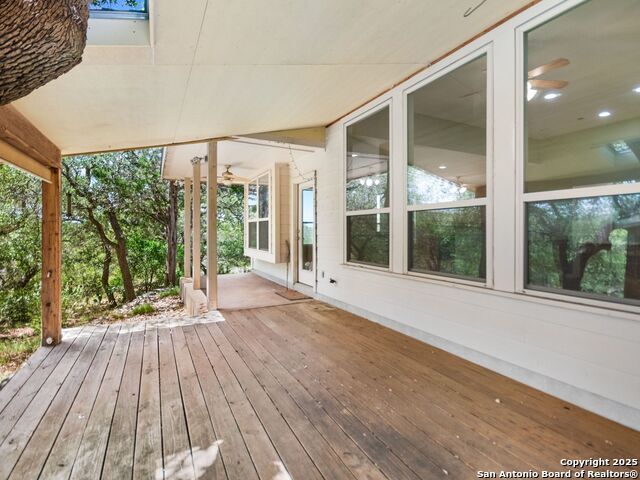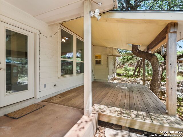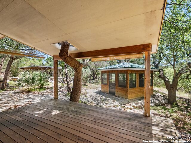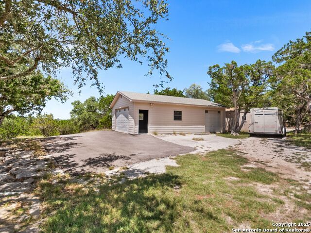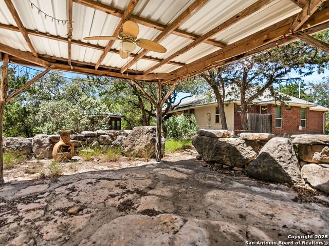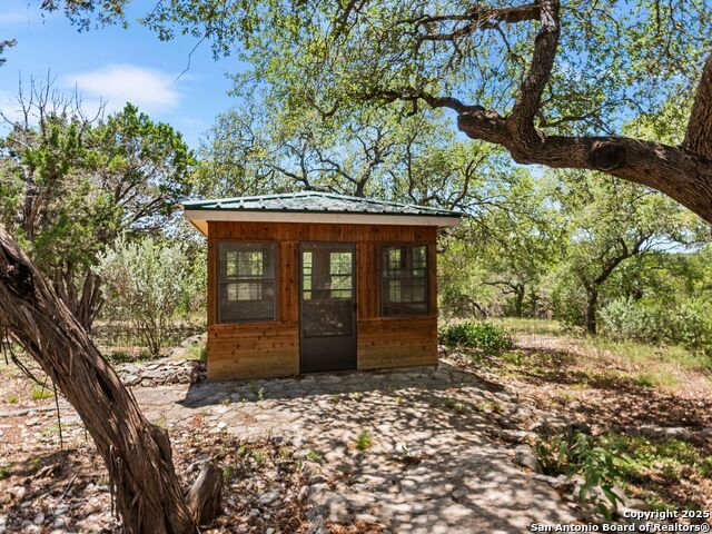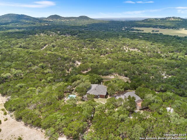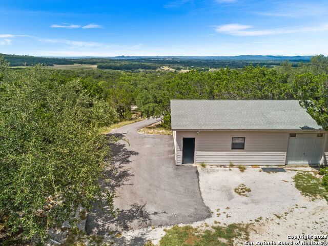 Only 6.7 miles from Bandera, this fully high-fenced 49 acre property offers unmatched privacy, panoramic Hill Country views, and a host of improvements to enjoy from day one. A paved private road leads directly from the highway to a well-maintained 3 bed, 2 bath home with no carpet throughout perfect for country living. Nature lovers will appreciate the continuous water pool fed by springs along the seasonal creek bed, truly a rare feature. Outbuildings and amenities abound including a detached double garage with 24' x 15' workshop with 200-amp power and roll-up door and a 24' x 12' detached building with water and electric, ideal for an office or hobby room. A covered grilling patio and screened in gazebo wired for a hot tub complete your outdoor entertainment. Store your RV under 24' x 36' carport with 50 amp service and even an additional two car carport. Secure equipment and house your horses in impressive 40' x 60' barn with dual sliding doors, 15' overhang, and attached hay storage. This is your chance to own a beautifully improved, turnkey Hill Country ag exempt estate just minutes from town.
