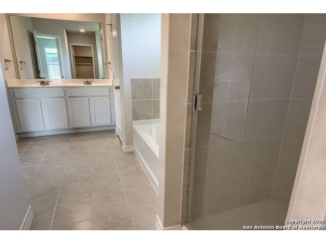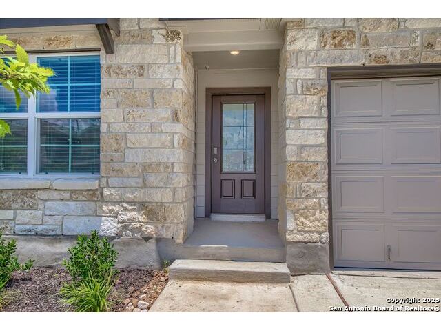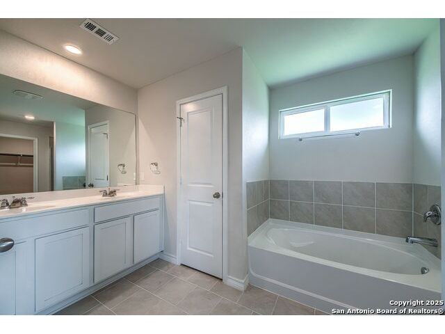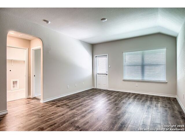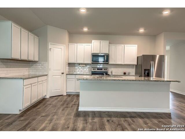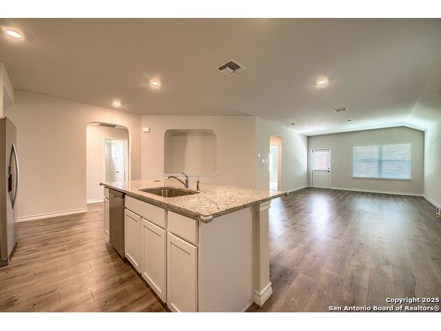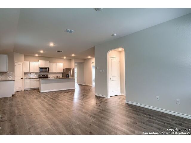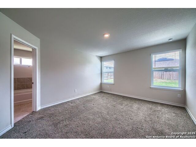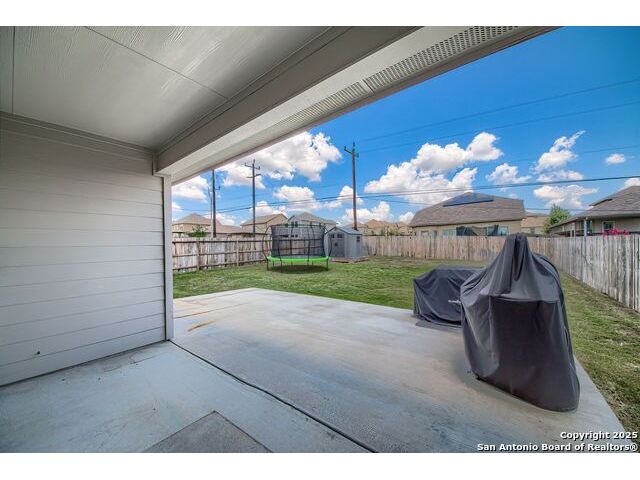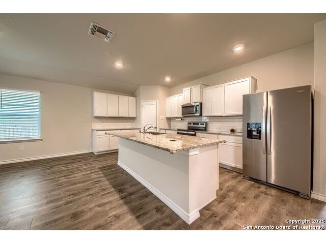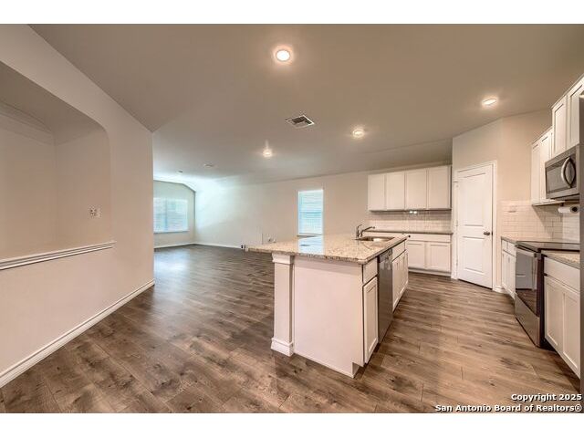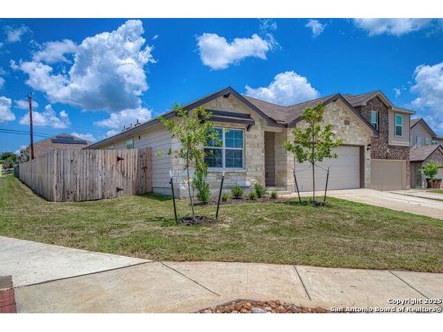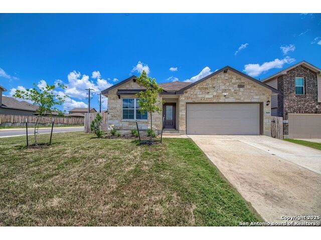This is the Bryant floor plan with DR Horton, 1703 sqft, 4 bedrooms, 2 bathrooms with open and spacious living. Elongated entry with decorative nook leads to spacious eat-in kitchen. Kitchen boasts oversized island with granite top, built-in device charger, stainless steel appliances with subway tile backsplash. Private main bedroom in back of house with ensuite double vanity bathroom. Separate tub and shower, water closet and walk-in closet .9 foot ceilings with 2 inch faux wood blinds throughout. "Smart" features through Home is Connected using one hub that talks to all devices in home (lights, thermostat, locks). Covered patio with extra slab added for entertaining. Full yard landscaping and full yard irrigation. Come and see this beautiful home with neutral aesthetic.