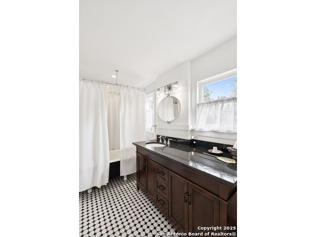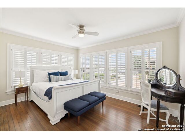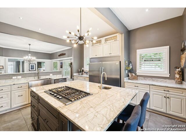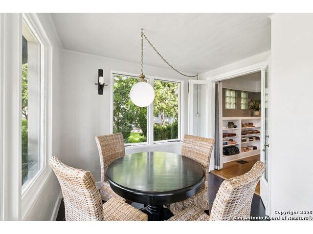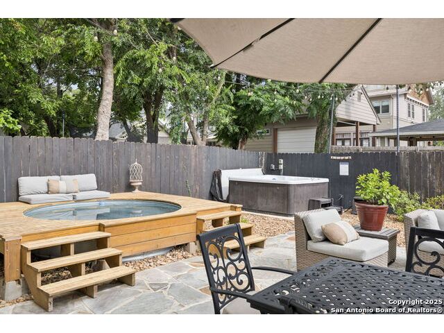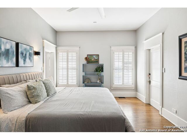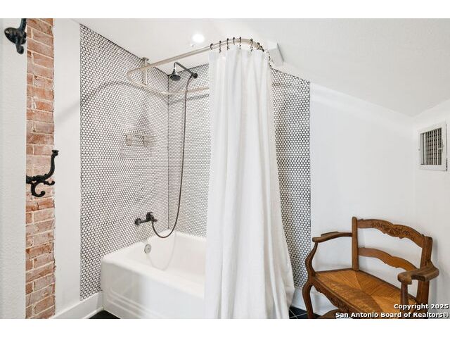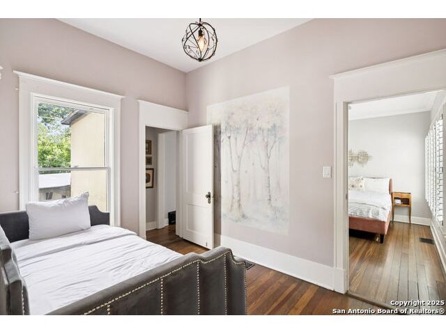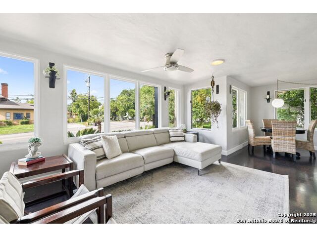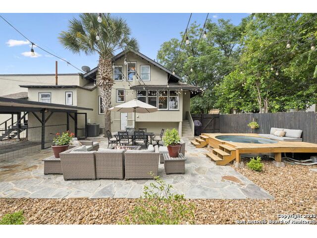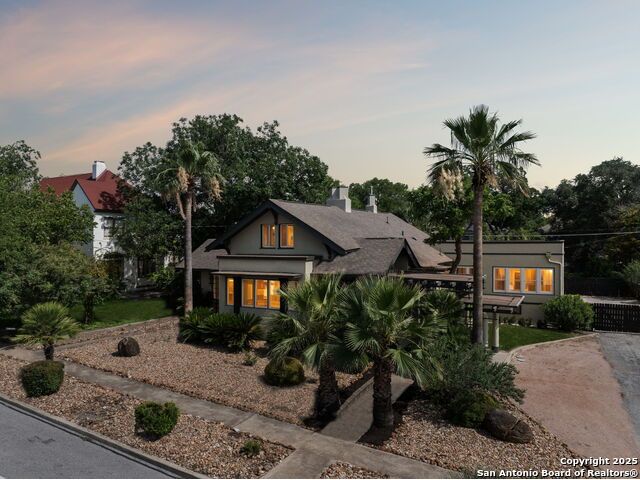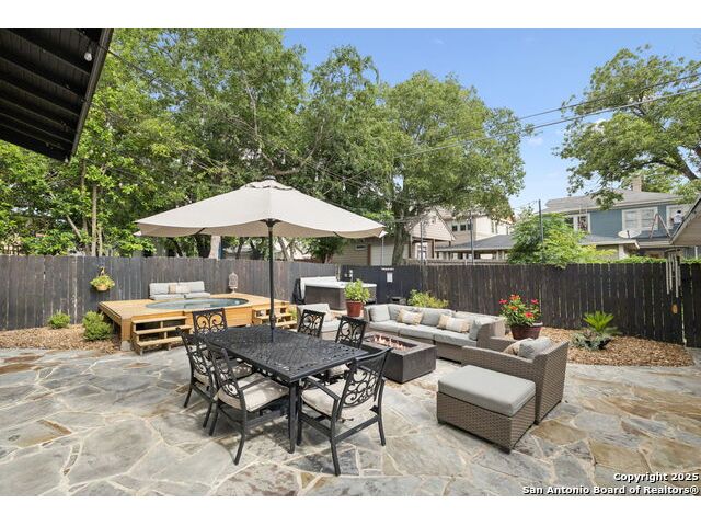 Timeless charm meets modern luxury at 133 E. Mistletoe in Monte Vista. This architecturally stunning home beautifully blends historic charm with modern updates. Featuring original hardwood floors, exposed Chicago brick, and three fireplaces, every room is filled with character. Enjoy a sun-filled glassed-in porch, formal dining with a fireplace, a cozy reading room, and a chef's kitchen with gas cooking, double ovens, wine fridge, farmhouse sink, and stainless appliances. The spacious primary suite offers a fireplace, walk-in closet, and a luxurious bath with dual vanities and oversized shower. A clawfoot tub in the second bath nods to the home's heritage, while the third bath features exposed brick and updated tile. A private guest suite includes a bedroom, living area and coffee bar. Outdoors, enjoy a flagstone patio, wading pool, hot tub, special lighting and four -car carport. Check out the basement which provides unlimited storage! Located in one of San Antonio's most prestigious neighborhoods.