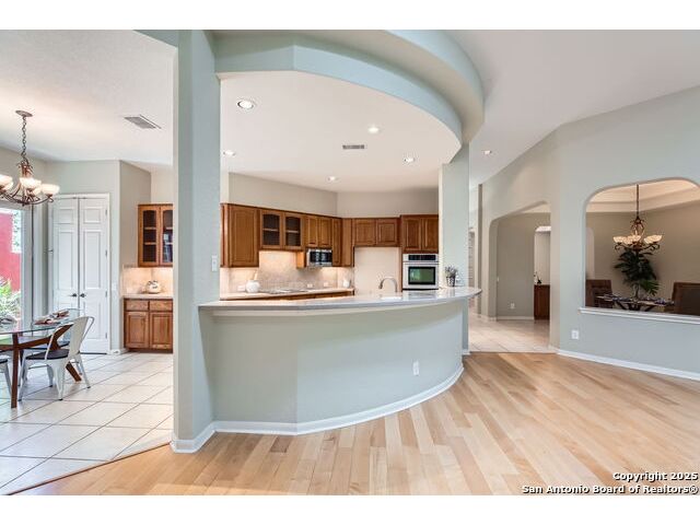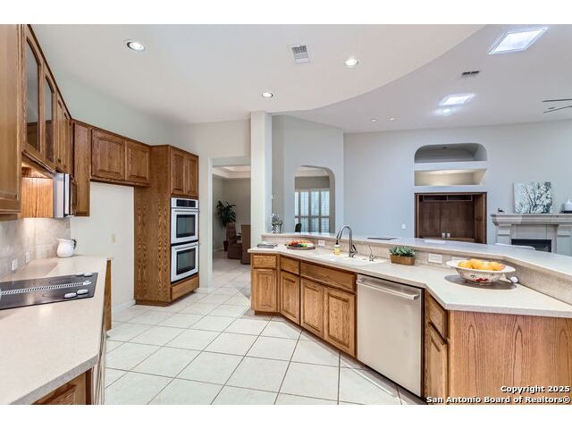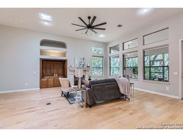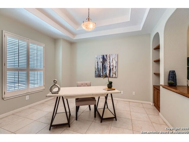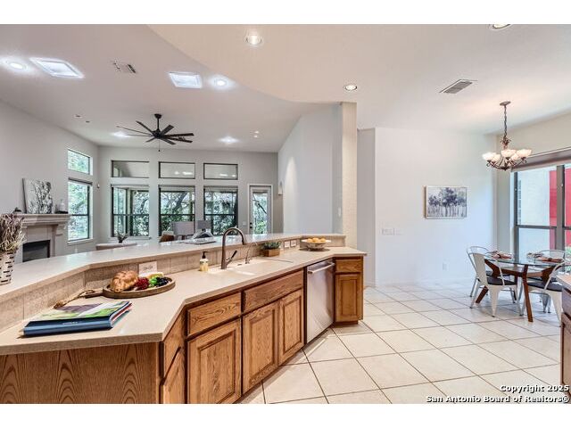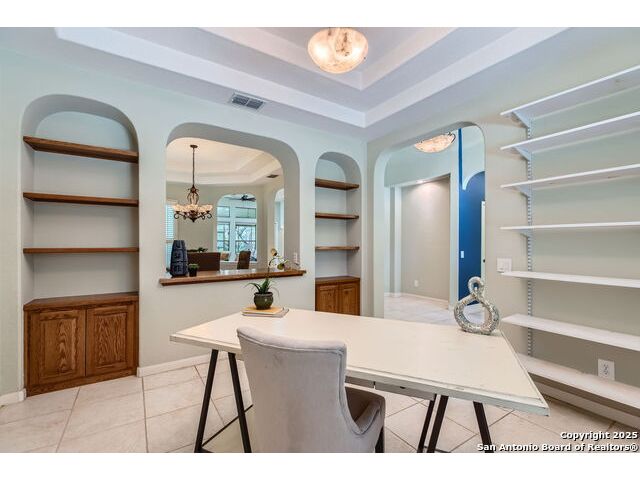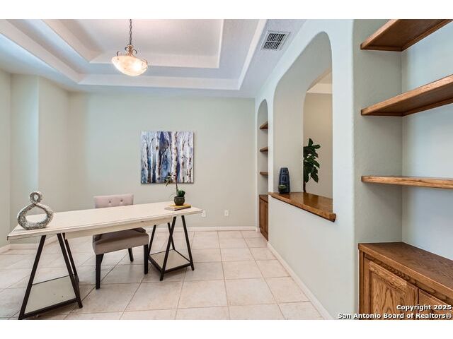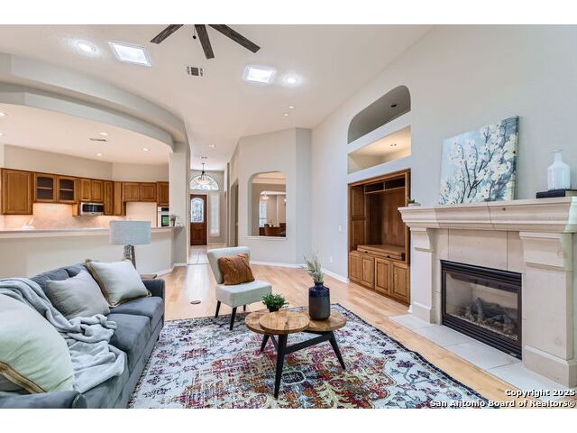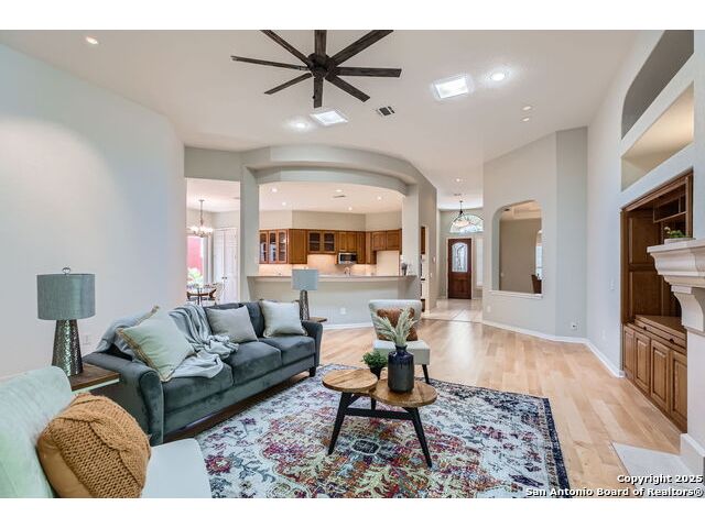 Tucked away in the vibrant Roseheart neighborhood, this single-story sanctuary offers more than just a house - it's a canvas for life's most cherished moments. Step inside, and you're greeted by a family room that sparkles with light and calls to you to kick off your shoes and relax. Sunlight dances across polished wood floors, while a crackling fireplace stands ready to ward off those chilly winter evenings. The room's expansive windows blur the line between indoors and out, framing a view of mature trees that provide shade and a soothing view of the natural surroundings. The heart of this home beats in its kitchen - a culinary workshop where modern meets practical. Stainless steel appliances gleam, surrounded by an abundance of cabinets and counters that would make any home chef's eyes light up. The adjacent breakfast nook, complete with a built-in sidebar, stands ready for everything from hurried Monday mornings to leisurely Sunday brunches. For those who appreciate a larger gathering, the dining room awaits. Built-in cabinets with glass fronts stand ready to display your treasures, while a door leads to a private outdoor atrium - your own secret garden for morning coffees or midnight stargazing. Bookworms and work-from-home warriors will find solace in the study, where built-ins eagerly await your literature collection or the glow of your laptop. The primary bedroom is a retreat unto itself - spacious enough to accommodate a sitting area for those moments when you need to escape the world. Its en-suite bathroom boasts dual vanities (because morning rush hour should stay on the streets) and a walk-in shower that invites lingering. Saltillo tile adds a touch of southwestern charm, its earthy tones grounding the airy feel of the spaces. But the piece de resistance? The Florida room at the back of the house. Here, surrounded by windows, you'll feel as though you're sitting amidst the lush, thoughtfully designed landscape of your backyard - without the mosquitos. This isn't just a three bedroom, two bath house. It's a beautifully maintained stage for your next chapter, where every room tells a story, and every window frames a memory waiting to be made. Welcome home, your adventure begins at the front door.