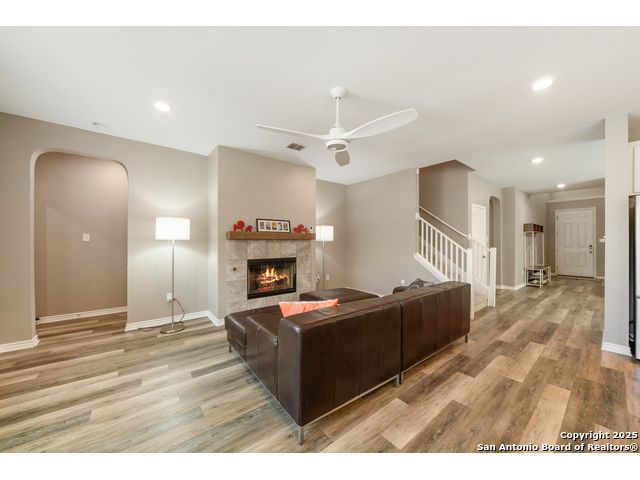 Beautifully maintained and thoughtfully designed, this 4-bedroom, 2.5-bath home in desirable Helotes offers an ideal blend of comfort and style-plus gorgeous hill country views with no rear neighbors. The open-concept layout features updated Silestone countertops, stainless steel appliances, a spacious island perfect for entertaining, and abundant storage throughout. The living area includes a cozy fireplace, creating a warm, inviting atmosphere. The private main suite is located downstairs and offers a spacious layout with a double vanity, separate tub and shower, and ample natural light. Upstairs, you'll find a massive game room and three generously sized bedrooms-perfect for guests and gatherings. Enjoy a private backyard with wood fencing on the sides and a beautiful masonry fence along the back. The garage comes equipped with built-in storage racks and is plumbed for a utility sink-ready for your tools or hobbies. With solid construction, peaceful surroundings, and unbeatable views, this home has everything you've been looking for.