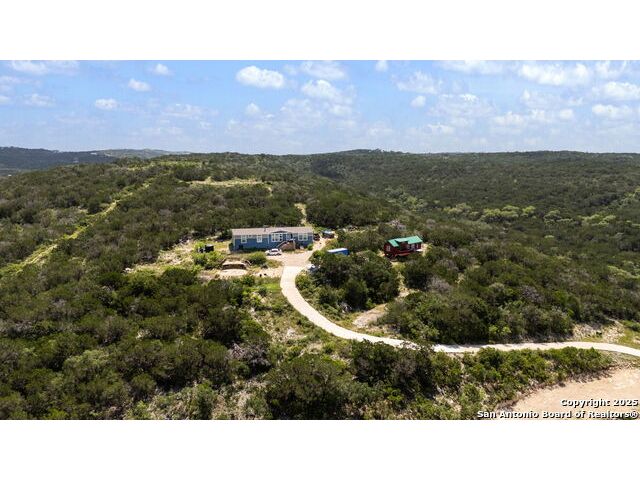 Experience the Serenity of Hilltop Living - 50.66 Acres of Scenic Land with Stunning Medina Lake Views! Escape to 50.66 acres of peaceful, elevated landscape-ideal for nature lovers, outdoor adventurers, or anyone craving privacy and breathtaking panoramic views, including beautiful vistas of Medina Lake. Whether you're looking for a weekend retreat or a quiet hideaway, this hilltop property offers unmatched tranquility and natural beauty. The property includes a spacious 4-bedroom, 2-bath double-wide manufactured home featuring an open floor plan-perfect for comfortable living and entertaining in a serene, natural setting. Seller will also sell as land only and remove manufactured home.