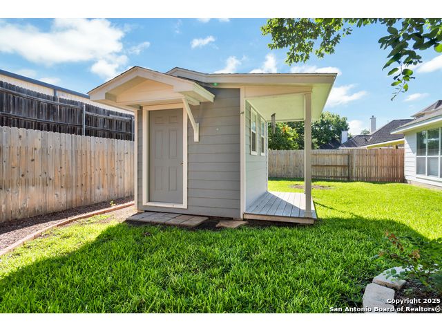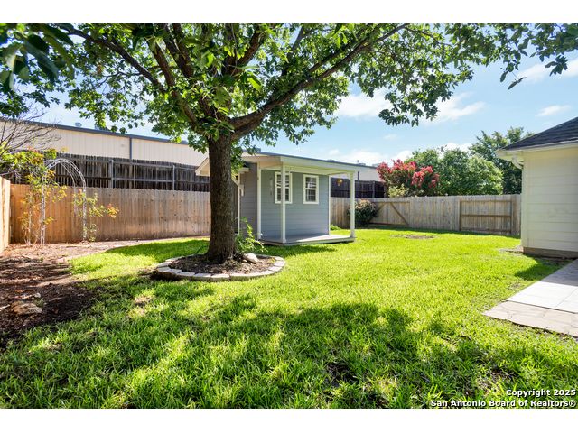 Discover this beautiful, updated, immaculate one-story home nestled in the quiet neighborhood of Redland Estates. This 4-bedroom, 2-bath gem features stunningly landscaped front and backyards, with a spacious backyard perfect for entertaining. A charming storage shed includes its own sitting porch, ideal for relaxing outdoors. Inside, the large master suite is fully updated with a spa-like bath offering a separate tub, walk-in shower, and generous walk-in closet. The kitchen is a chef's dream with siltstone countertops, updated appliances and fixtures, 42-inch cabinets, and ample space. Enjoy 10-ft ceilings, elegant crown molding, wood floors, and ceiling fans throughout. The open-concept layout includes a breakfast area, breakfast bar with views into the living room, and a cozy corner fireplace. Refrigerator and curtains stay!