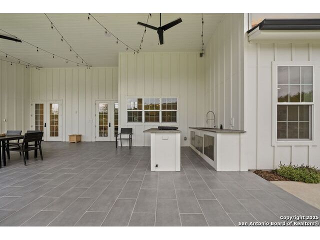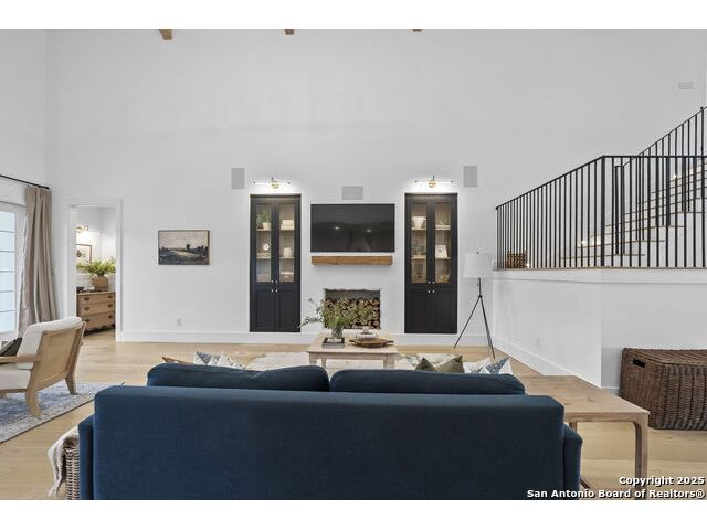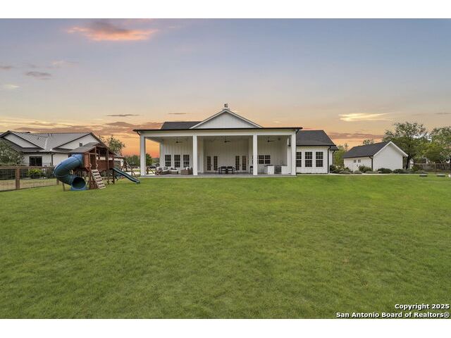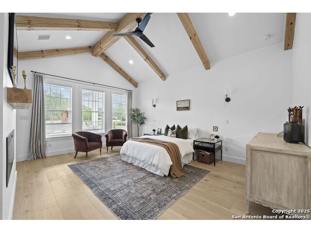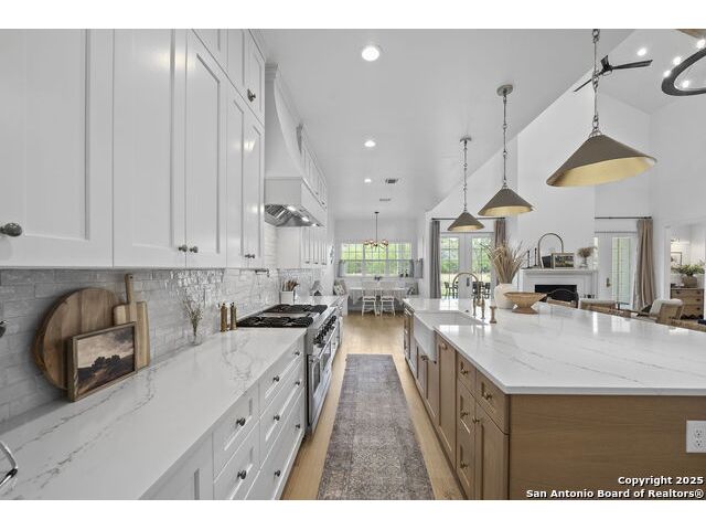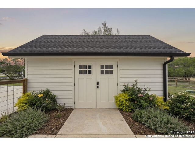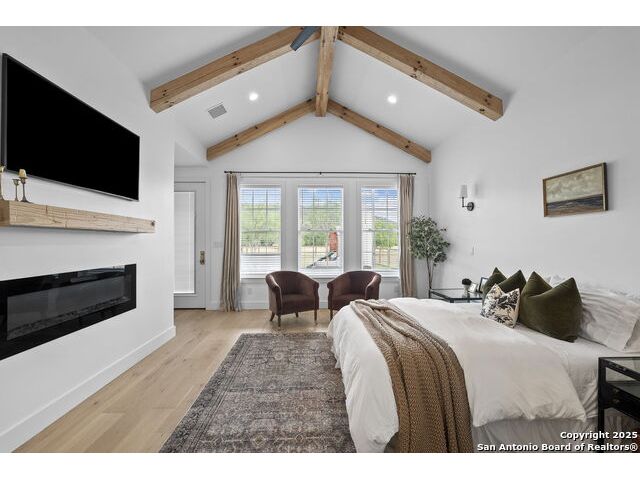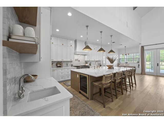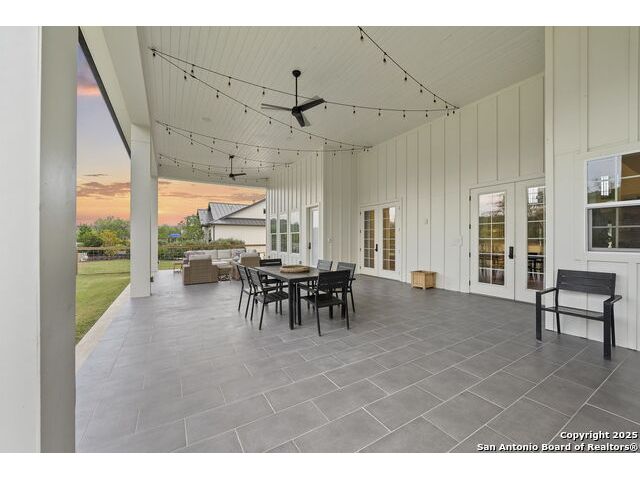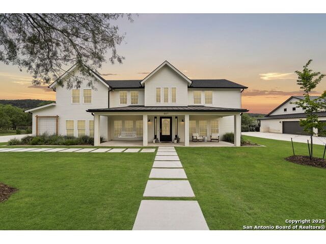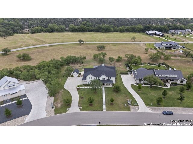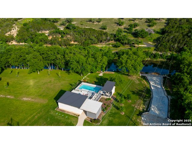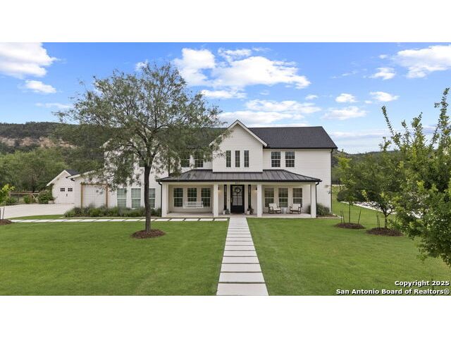 Hill Country Luxury with Private Guadalupe River Access located in an exclusive gated community of just 57 homes, this stunning 5,021 sq ft estate offers 4 bedrooms, 4.5 bathrooms, an office, a loft, and a storage room-with one upstairs bedroom ready for a private bath addition. Enjoy breathtaking views of the Hill Country bluffs over the Guadalupe River, with direct private river access and a resort-style community pool. Just around the corner from Whitewater Amphitheater, and minutes from Canyon Lake, Wimberley, and all that New Braunfels has to offer. Designed for elevated living, the chef's kitchen features Viking panel appliances, 48" range with griddle and dual ovens, 32" wall oven, a nugget ice maker, a beverage cooler, instant hot water, a wet-bar, and an oversized island. The pantry includes vertical shiplap and an 8' butcher block counter. Retreat to a master suite with timber beams, an electric fireplace, and a spa-inspired bath with a marble shower (3 heads), soaking tub, built-ins, and in-ceiling speakers. Secondary bedrooms offer built-ins, shiplap, and window seating. The living room impresses with a vaulted timber ceiling, wood-burning fireplace, library lighting, and 5.1 surround sound. Custom office, mudroom, and laundry include built-in cabinetry and farmhouse sinks. The 3-car garage is fully equipped with epoxy floors, EV and welder plugs, compressed air system, and utility sink. Enjoy the 1,200 sq ft covered patio with a built-in Blackstone griddle, stainless cabinetry, sink, speakers, and propane hookup. Additional features: Navien tankless water heaters, 16-camera 4K security, water softener & filtration, Trane HVAC with UV air purification, Backup generator connection, and a 12x20 shed. This is luxury Hill Country living at its finest. Don't forget to take a look at the Guadalupe River and the community pool.