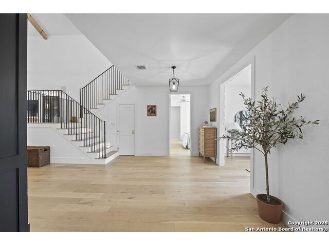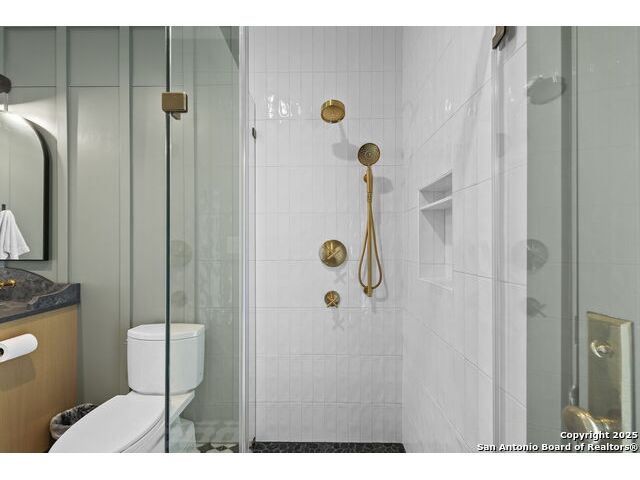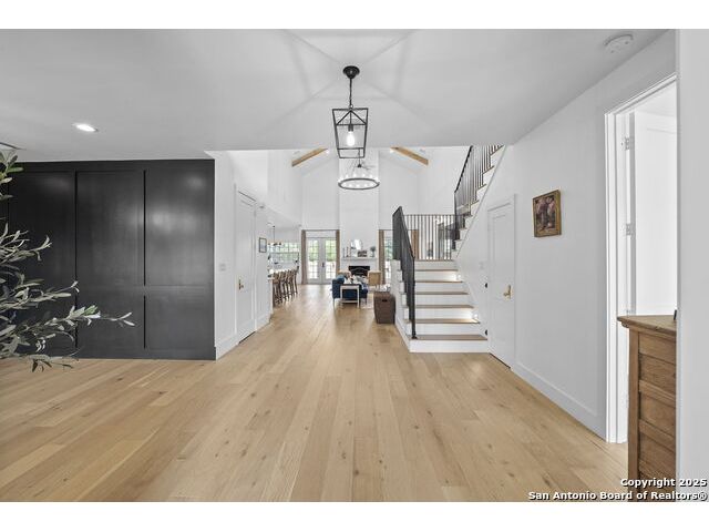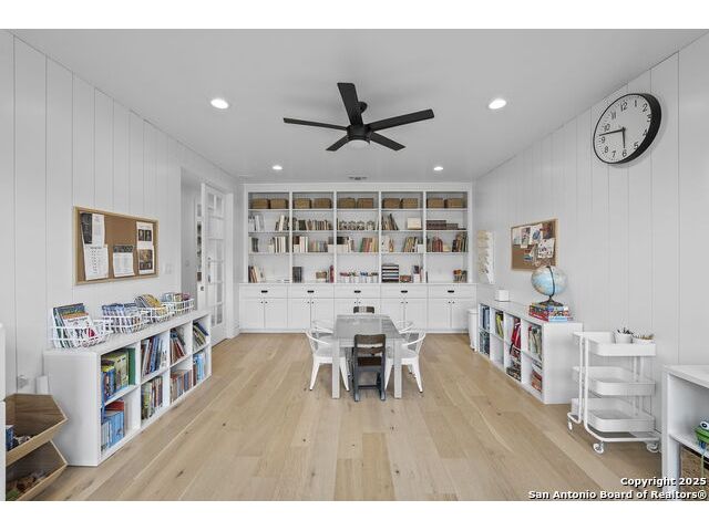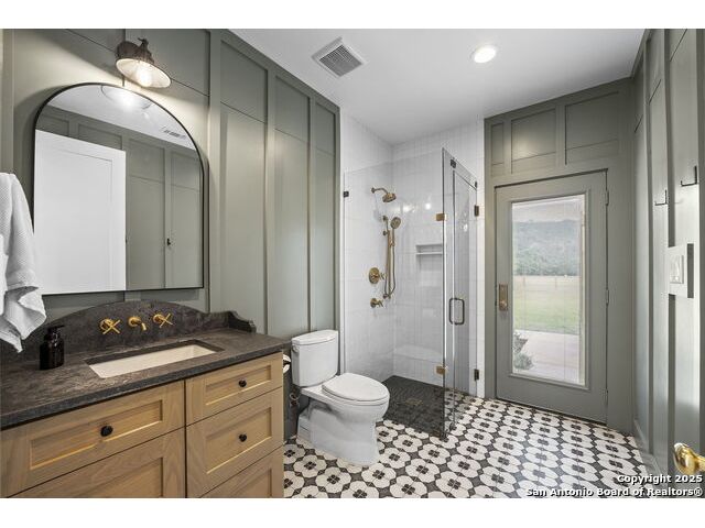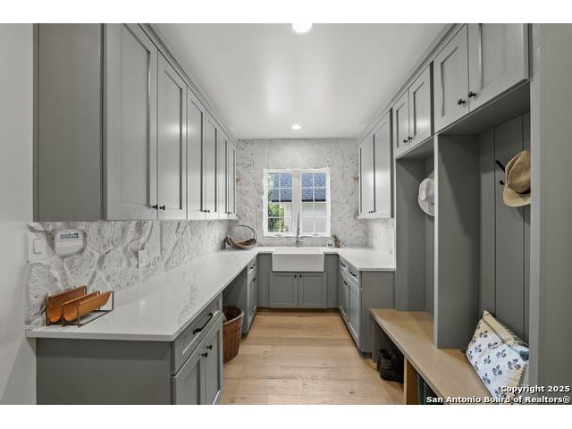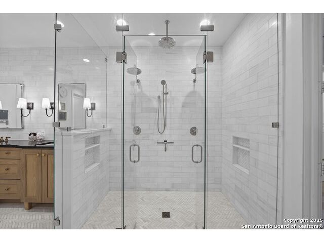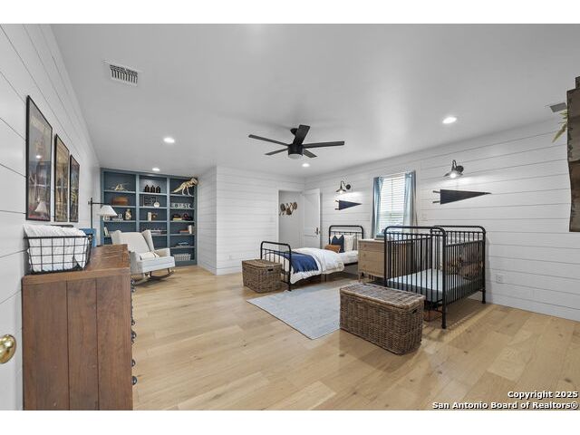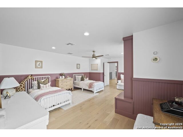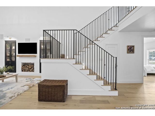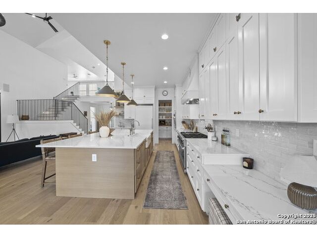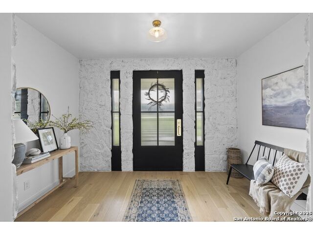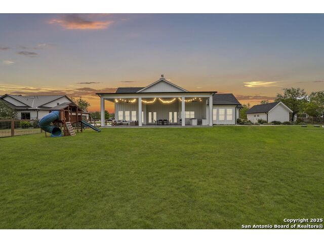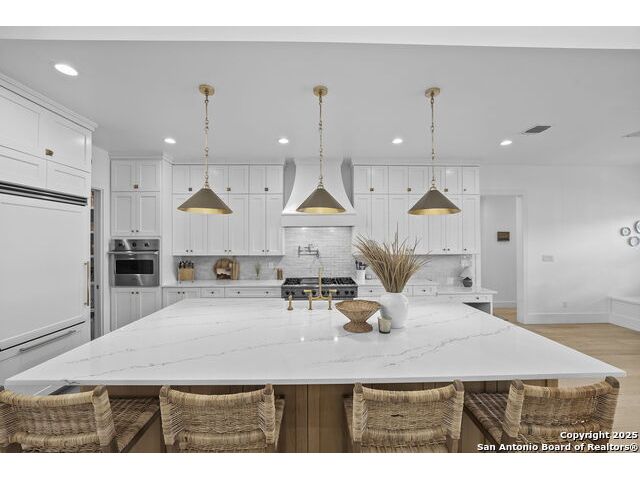 Hill Country Luxury with Private Guadalupe River Access located in an exclusive gated community of just 57 homes, this stunning 5,021 sq ft estate offers 4 bedrooms, 4.5 bathrooms, an office, a loft, and a storage room-with one upstairs bedroom ready for a private bath addition. Enjoy breathtaking views of the Hill Country bluffs over the Guadalupe River, with direct private river access and a resort-style community pool. Just around the corner from Whitewater Amphitheater, and minutes from Canyon Lake, Wimberley, and all that New Braunfels has to offer. Designed for elevated living, the chef's kitchen features Viking panel appliances, 48" range with griddle and dual ovens, 32" wall oven, a nugget ice maker, a beverage cooler, instant hot water, a wet-bar, and an oversized island. The pantry includes vertical shiplap and an 8' butcher block counter. Retreat to a master suite with timber beams, an electric fireplace, and a spa-inspired bath with a marble shower (3 heads), soaking tub, built-ins, and in-ceiling speakers. Secondary bedrooms offer built-ins, shiplap, and window seating. The living room impresses with a vaulted timber ceiling, wood-burning fireplace, library lighting, and 5.1 surround sound. Custom office, mudroom, and laundry include built-in cabinetry and farmhouse sinks. The 3-car garage is fully equipped with epoxy floors, EV and welder plugs, compressed air system, and utility sink. Enjoy the 1,200 sq ft covered patio with a built-in Blackstone griddle, stainless cabinetry, sink, speakers, and propane hookup. Additional features: Navien tankless water heaters, 16-camera 4K security, water softener & filtration, Trane HVAC with UV air purification, Backup generator connection, and a 12x20 shed. This is luxury Hill Country living at its finest. Don't forget to take a look at the Guadalupe River and the community pool.