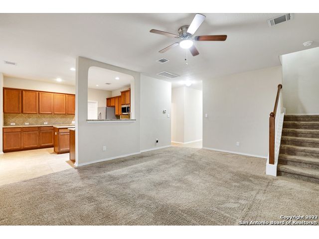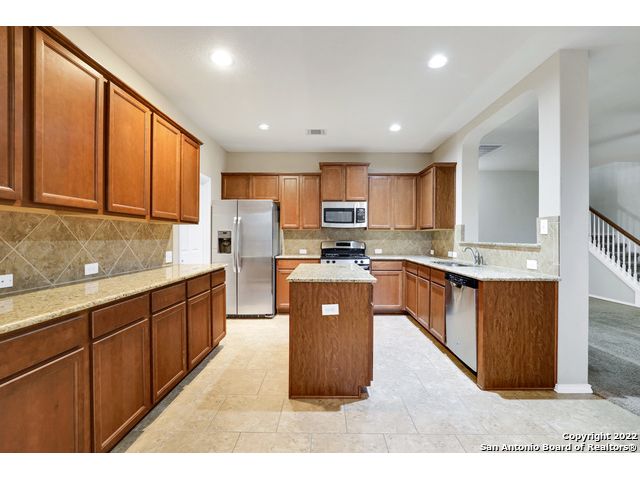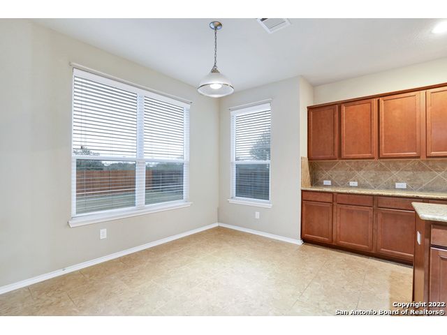 This beautiful home is nestled in a newer, established development, just minutes away from Randolph Air Force Base and conveniently close to Fort Sam Houston. It's conveniently located near shopping and entertainment centers, restaurants, and major highways. The spacious and moving-ready home features four bedrooms, a double closet in the master bedroom, a bonus room by the entrance, and an upstairs game room. The kitchen boasts a spacious island, an oversized pantry, granite countertops throughout, a water softener system, and a sprinkler system. Relax and unwind in the peaceful backyard, which offers a stunning view of the countryside and nearby farms, providing a serene and natural setting.