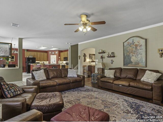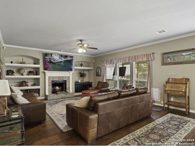 Sonoma Ranch! Helotes! With 3,850 square feet of living space, this 5 bed 3 bath home offers room to spread out, connect, and create lasting memories. Whether you're hosting a big family gathering or enjoying a quiet night in, this home has the space and flexibility to meet every season of life. Step inside and you'll find three generous living areas, a formal dining room for special meals, and a bright, eat-in kitchen where stories are shared over coffee and pancakes. The fireplace adds charm and a cozy focal point to the main living area - perfect for holiday gatherings or relaxed evenings at home. Custom built-ins add both character and functionality. Outside, the covered back porch with ceiling fans creates a perfect spot to relax at the end of the day or enjoy a morning breeze with your favorite book. The 0.17-acre lot gives just the right amount of space to play, garden, or entertain - with minimal upkeep. Located just minutes from top-rated schools like Beard Elementary and Brandeis High School, and close to shopping, dining, and major highways, this home is as convenient as it is charming. If you're looking for a place that feels like home the moment you walk in, don't miss your chance to see 15622 Portales Pass in person. Schedule your private tour today and experience the best of Helotes living!