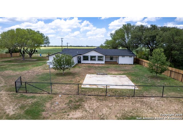 Beautiful and functional rural property on 4 acres, just 4 miles south of FM 140. The main home is a completely remodeled 3 bedroom, 2 bathroom layout with an attached 1 bed, 1 bath guest suite behind the garage-ideal for multi-generational living or rental income. The property includes approx. 2,482 sq ft of total living space, a 2-car garage, a large workshop, 40' connex container, very large RV carport, animal barn for 4-H projects, and additional shed on slab. Recent upgrades include a brand new water well system. Tall trees and a 6' privacy fence on two sides create a peaceful and private atmosphere. A rare combination of space, infrastructure, and country charm-ready for immediate enjoyment & only 5 minutes to town, yet out of town feel.