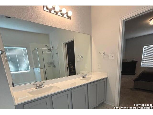 ASSUMABLE FHA LOAN AT 3.625 AVAILABLE!!! CORNER LOT, ENTERTAINING PATIO/DECK, UPGRADED FIXTURES, SOLAR PANELS,SHED WITH WINDOW AC UNIT AND SO MUCH MORE!! Stunning 4 bedroom, 3.5 bath with office/study and game room on a huge corner lot in Notting Hill. This spacious home has soaring ceilings, chandeliers, walk-in closets, TWO PRIMARIES and upgrades. A study/office that is perfect for those who work at home. The back yard has a covered patio with extended deck, ready for entertaining! And, a 12 X 12 shed with a window AC unit. Super location with easy access to IH-10, 1604, Loop 410 and IH-35. Short commute to both Randolph AFB and Fort Sam Houston. Notting Hill community amenities include a pool, playground, sports court, BBQ area and walking trails. Make this DREAM home yours today!