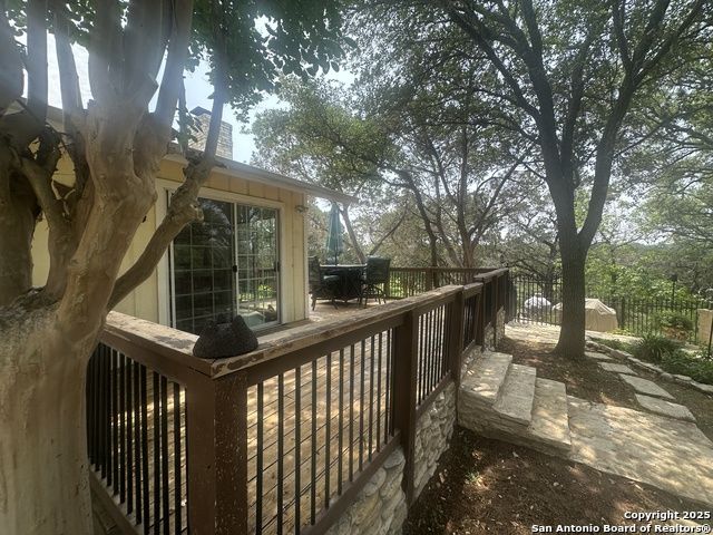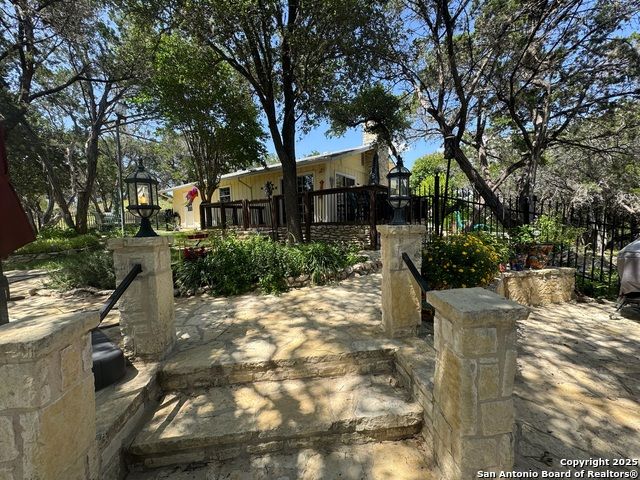 Welcome to 354 Red Bluff Lane. Beautifully laid out property with two small homes and amazing outdoor entertainment areas. The primary home is a nicely updated 1 bedroom, 1 bath home with nice living and dining area and kitchen. Outside the home you'll find an expansive patio area with multiple levels and areas for outside entertaining, dining or just relaxing. Not far from the main home is a guest cottage with inviting front porch, living area, bedroom and bathroom. Adjacent to the cottage is a two car garage and a small greenhouse and storage building. During periods of wet weather, Red Bluff Creek can flow at the bottom boundary of the property. This property is high fenced and gated with a private well and septic. Plenty of room for other improvements on this beautiful Texas Hill Country gem.