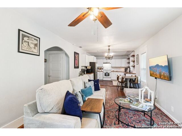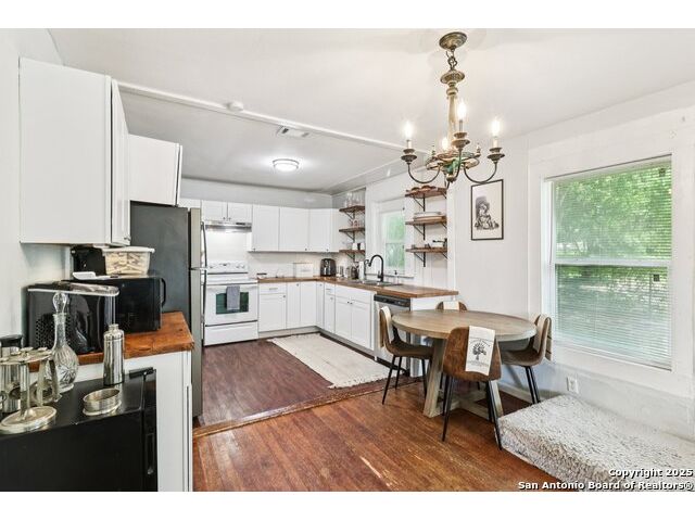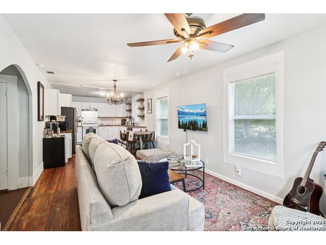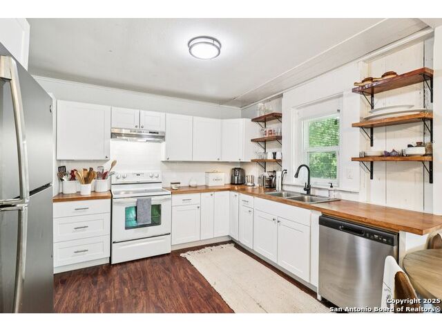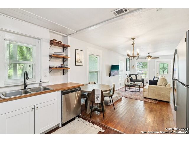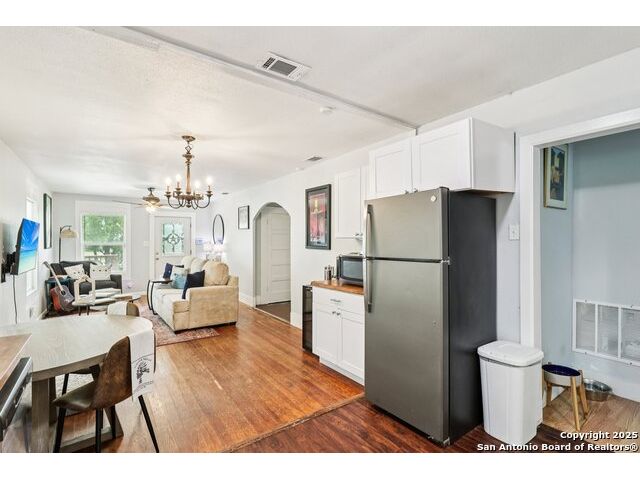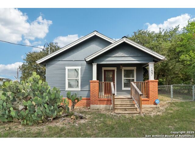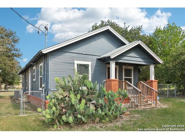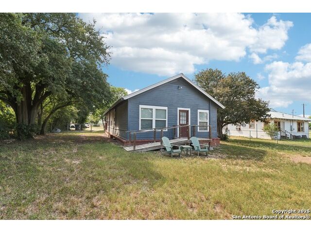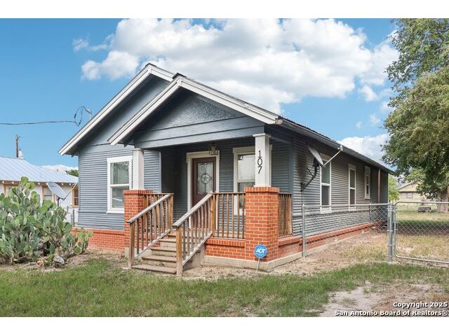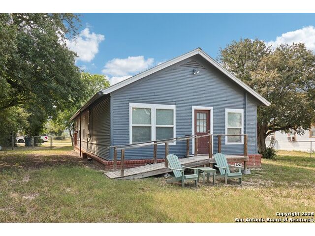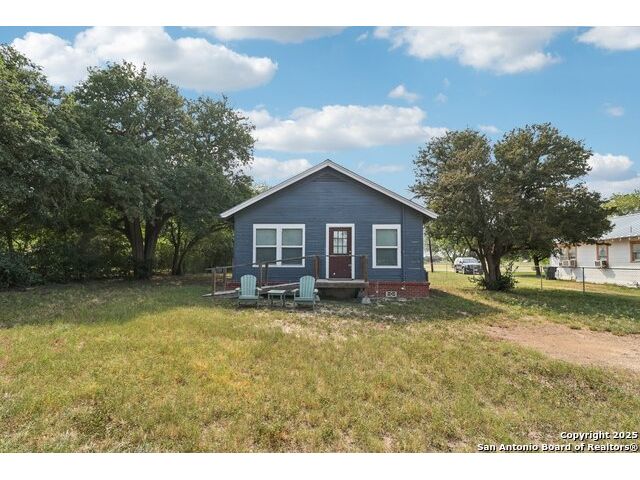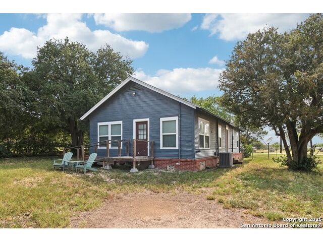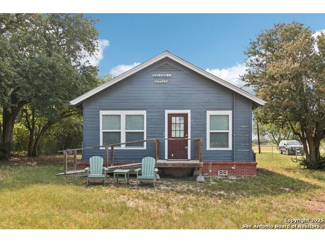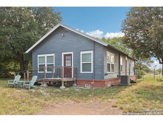 Welcome to this charming 3-bedroom, 1.5-bath farmhouse-style home at the entrance to Beaver Country in Falls City, Texas. Set in a quiet small-town community, this home blends original character with thoughtful modern updates. Step inside to find beautifully maintained original hardwood floors throughout, paired with a spacious layout and a fully equipped kitchen featuring a refrigerator, range, dishwasher, and microwave. The dedicated laundry room adds everyday convenience, while the ramped backdoor provides easy, accessible entry. A standout feature of this home is the stunning, shining metal roof-durable, eye-catching, and built to last. Outside, the large lot is shaded by mature oak trees and fully enclosed with a chain-link fence-perfect for kids, pets, and peaceful backyard living. Located near Falls City ISD, this home offers a relaxed lifestyle with modern touches. Move-in ready and waiting for its next owner-come take a look before it's gone.