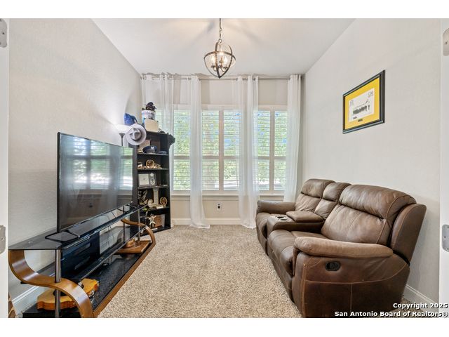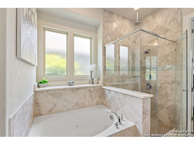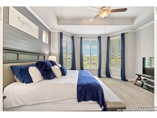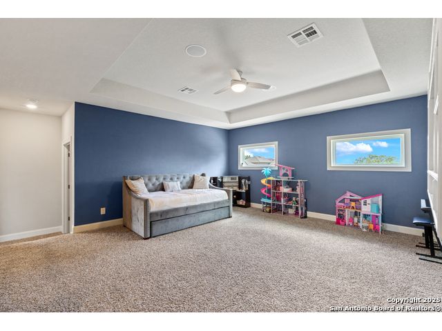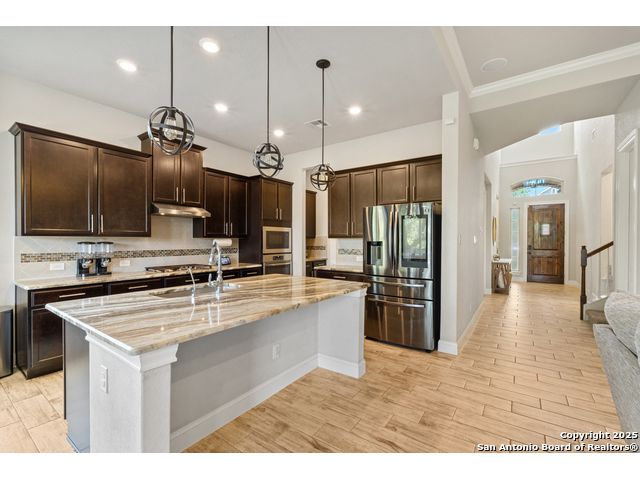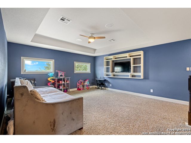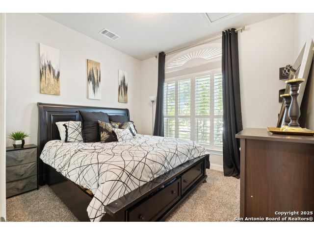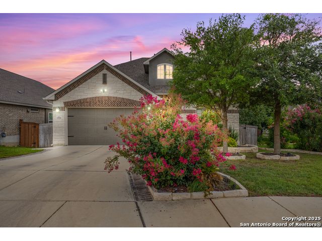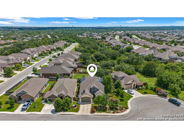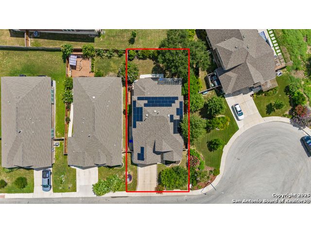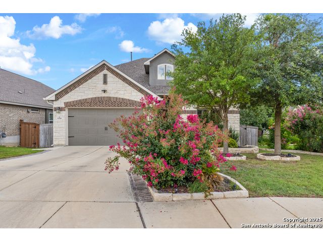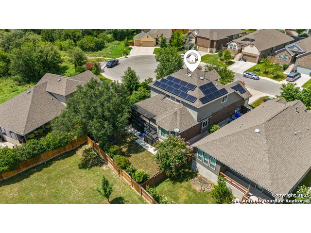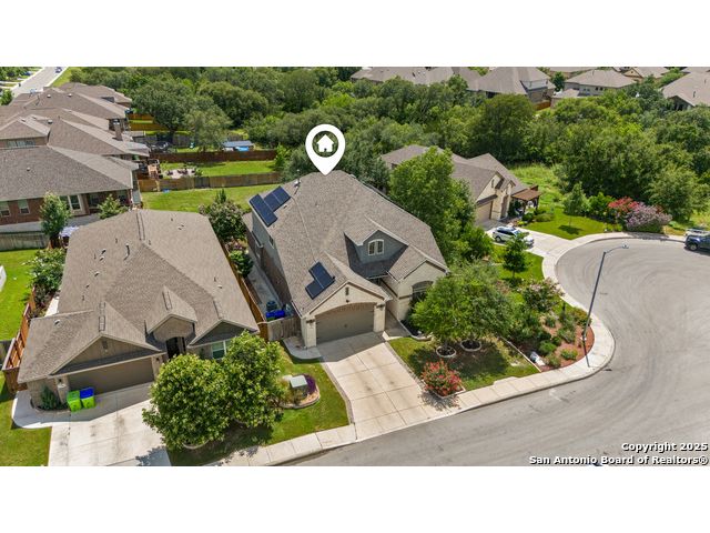 Welcome to your dream home in the highly desirable Fronterra at Westpointe community! Nestled on a quiet cul-de-sac, this stunning residence features a striking stone and brick exterior, beautifully manicured landscaping, and numerous upgrades throughout. This spacious home offers 5 bedrooms, 4 full bathrooms, a private office/den, and a dedicated media room, providing ample space for both relaxation and entertaining. It's a smart home powered by fully paid-off Tesla solar panels, with ownership and warranties transferring to the new owner for added value and energy efficiency. Step inside to an open-concept floor plan filled with natural light and luxury touches. The chef's kitchen boasts custom cabinetry, granite and marble countertops, a walk-in pantry, coffee nook, gas range, reverse osmosis system, and a large island with bar seating, all overlooking the expansive family room complete with a built-in audio system-perfect for entertaining. The primary suite is a private retreat, featuring bay windows, plantation shutters, vaulted ceilings, and a custom shiplap accent wall. The spa-like ensuite includes a jetted tub, walk-in rain shower, double vanity, linen closet, and a custom-designed walk-in closet with direct access to the laundry room. A secondary bedroom and full bath are conveniently located on the main floor, ideal for guests or multigenerational living. Upstairs, discover a versatile game/loft space with tray ceiling and built-in audio, a cozy blackout home theater with custom media cabinetry, and three additional bedrooms-including one with an ensuite and another full bath with double vanities. Enjoy year-round outdoor living with the extended deck and pergola, complete with a built-in TV enclosure-ideal for BBQs and gatherings. Additional highlights include glass French doors leading to the private office/den, a functional mudroom, tankless water heater, water softener, and app-controlled lighting throughout. This exceptional property combines energy efficiency, smart features, and elegant design in one of the most sought-after communities. Don't miss your chance to make it home!