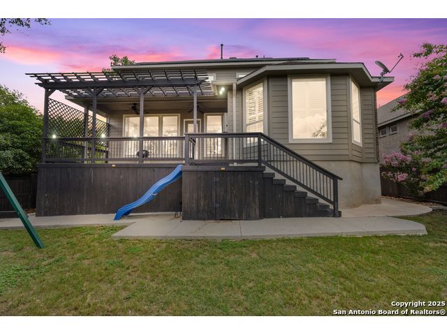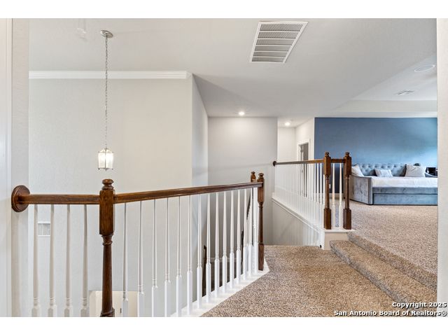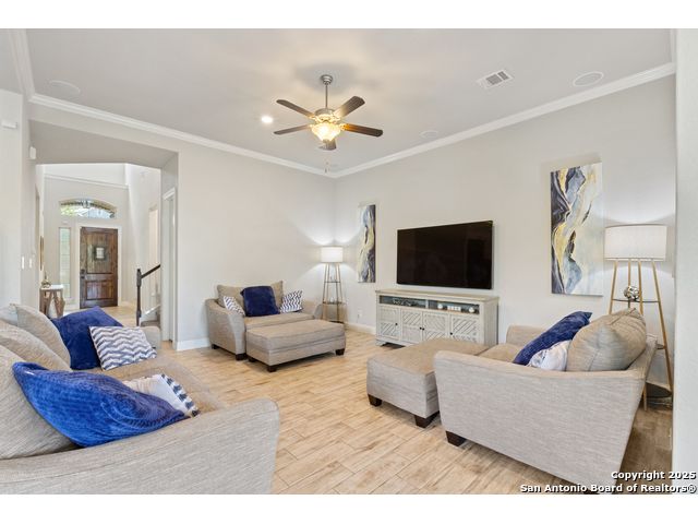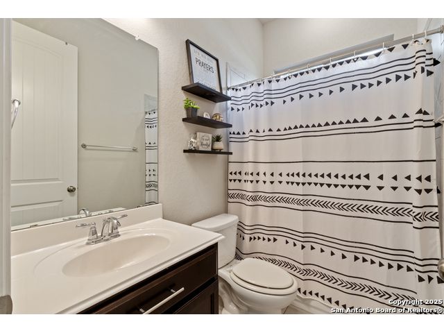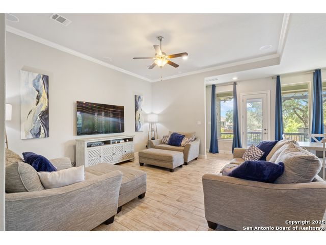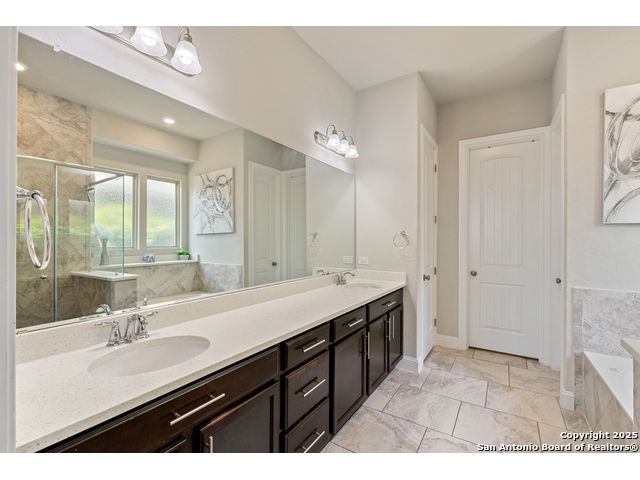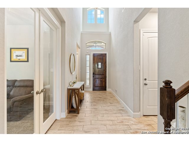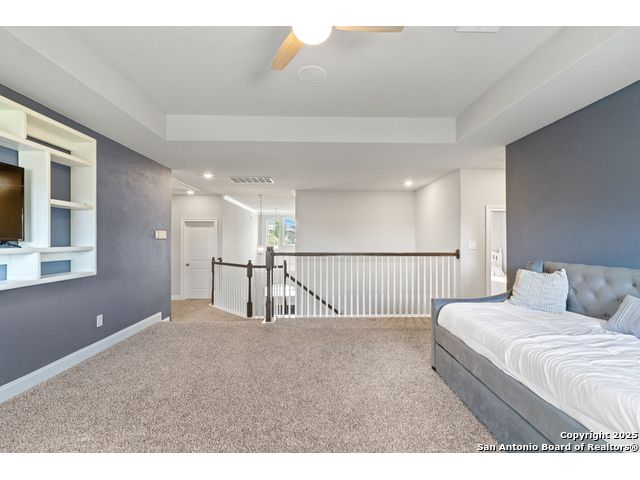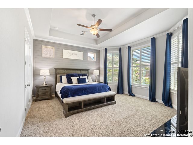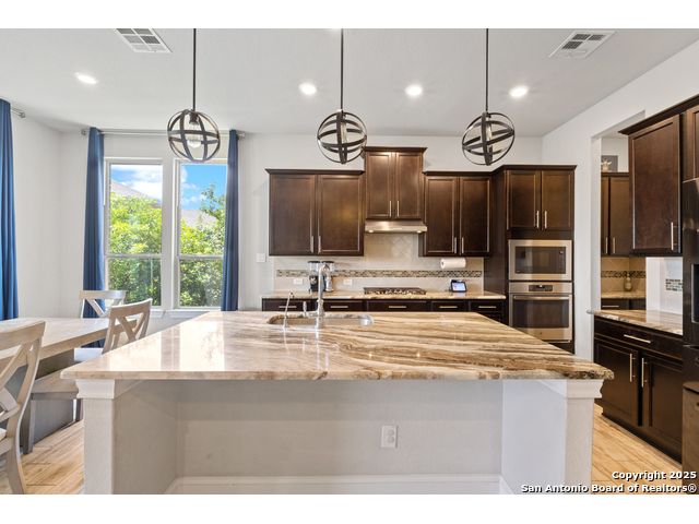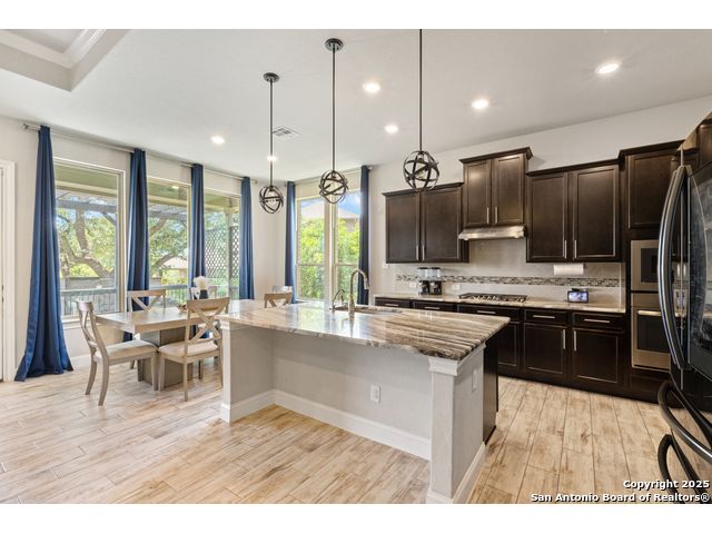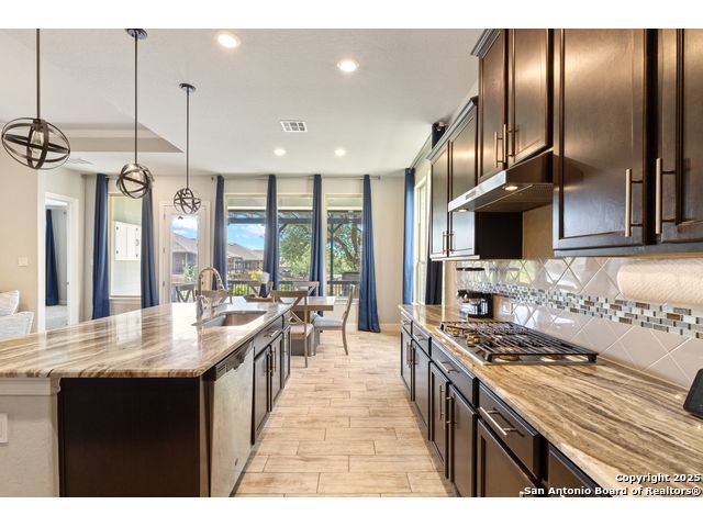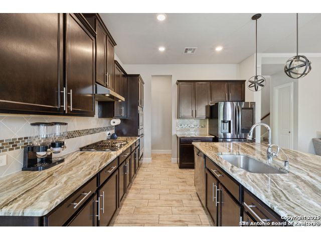 Welcome to your dream home in the highly desirable Fronterra at Westpointe community! Nestled on a quiet cul-de-sac, this stunning residence features a striking stone and brick exterior, beautifully manicured landscaping, and numerous upgrades throughout. This spacious home offers 5 bedrooms, 4 full bathrooms, a private office/den, and a dedicated media room, providing ample space for both relaxation and entertaining. It's a smart home powered by fully paid-off Tesla solar panels, with ownership and warranties transferring to the new owner for added value and energy efficiency. Step inside to an open-concept floor plan filled with natural light and luxury touches. The chef's kitchen boasts custom cabinetry, granite and marble countertops, a walk-in pantry, coffee nook, gas range, reverse osmosis system, and a large island with bar seating, all overlooking the expansive family room complete with a built-in audio system-perfect for entertaining. The primary suite is a private retreat, featuring bay windows, plantation shutters, vaulted ceilings, and a custom shiplap accent wall. The spa-like ensuite includes a jetted tub, walk-in rain shower, double vanity, linen closet, and a custom-designed walk-in closet with direct access to the laundry room. A secondary bedroom and full bath are conveniently located on the main floor, ideal for guests or multigenerational living. Upstairs, discover a versatile game/loft space with tray ceiling and built-in audio, a cozy blackout home theater with custom media cabinetry, and three additional bedrooms-including one with an ensuite and another full bath with double vanities. Enjoy year-round outdoor living with the extended deck and pergola, complete with a built-in TV enclosure-ideal for BBQs and gatherings. Additional highlights include glass French doors leading to the private office/den, a functional mudroom, tankless water heater, water softener, and app-controlled lighting throughout. This exceptional property combines energy efficiency, smart features, and elegant design in one of the most sought-after communities. Don't miss your chance to make it home!
