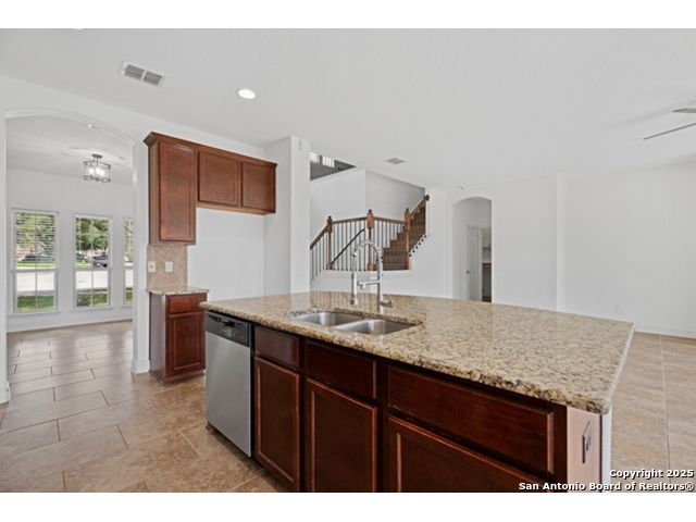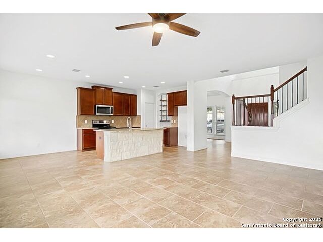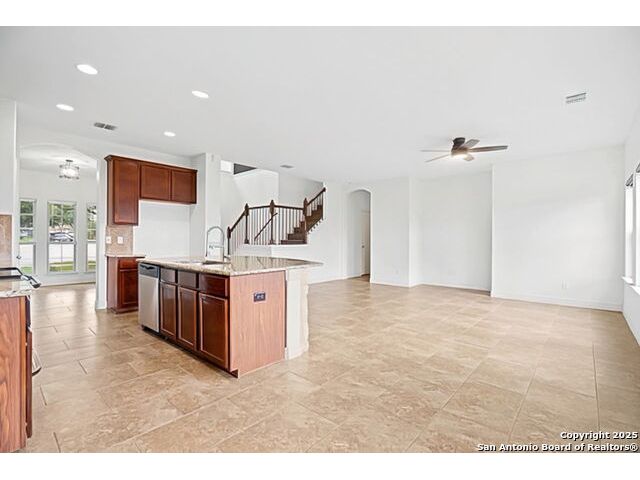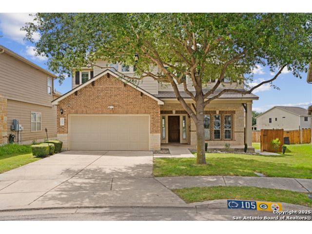 VA Loan at 2.375%! Qualified buyers can sidestep the typical mortgage process and assume the seller's existing loan-saving thousands annually! Welcome to 105 Highland Pl in Cibolo's sought-after Saddle Creek Ranch! This 4-bed, 3-bath home backs to a greenbelt and is loaded with updates and modern touches. Inside, you'll love the tile floors downstairs and luxury vinyl upstairs-no carpet in sight. The kitchen boasts granite countertops and opens to a spacious living area and formal dining room, making it perfect for entertaining. A downstairs bedroom and full bath are ideal for guests. Head upstairs to a loft-style living space and three more bedrooms, including a roomy primary suite with a barn door entry, soaking tub, walk-in shower, dual vanities, and a custom closet. Other highlights include updated lighting, a refreshed laundry room, and a partially renovated upstairs bath. Outside, enjoy an extended patio, a storage shed, and greenbelt privacy. Major updates: 2024 Trane HVAC, newer water heater and softener, and a 2022 roof. The community features a pool, clubhouse, trails, fitness stations, and more-all just minutes from Steele HS, FM 1103, and JBSA Randolph.