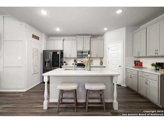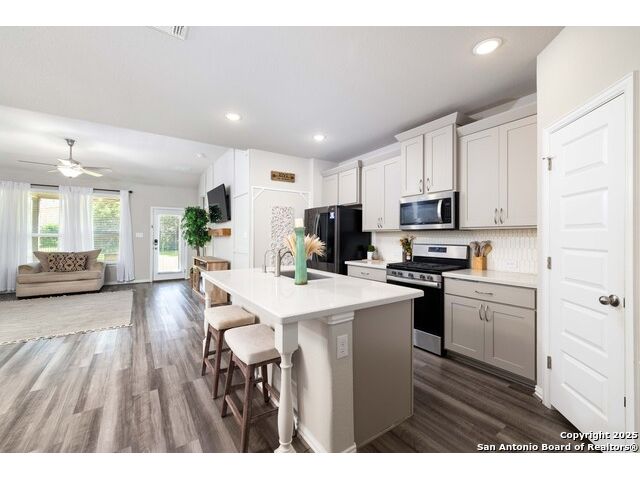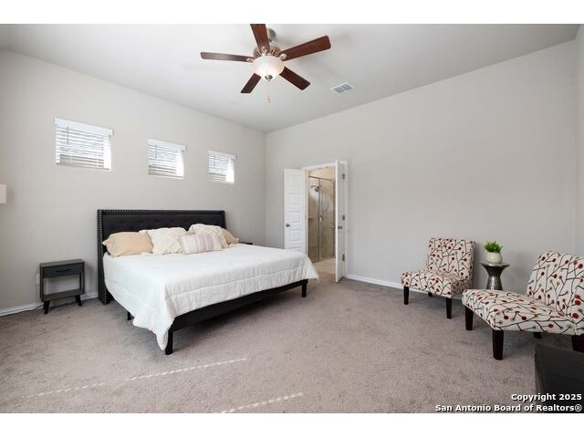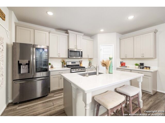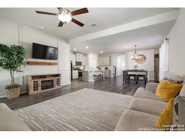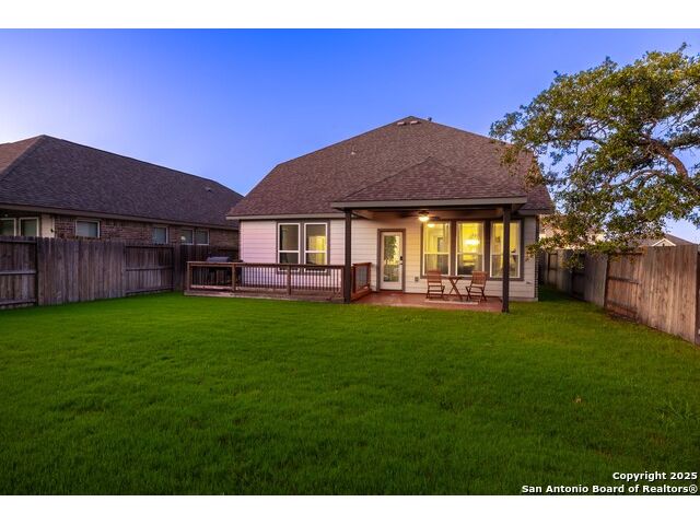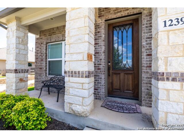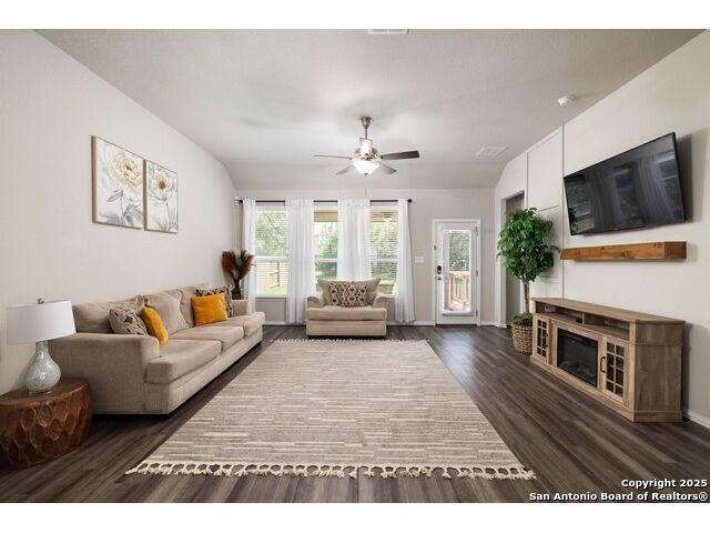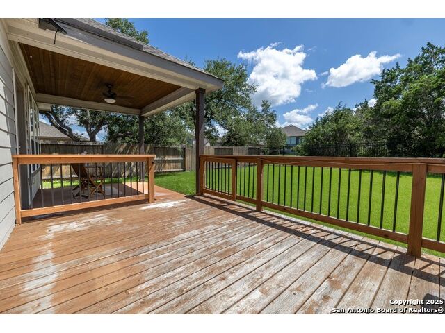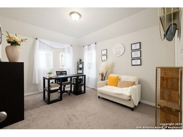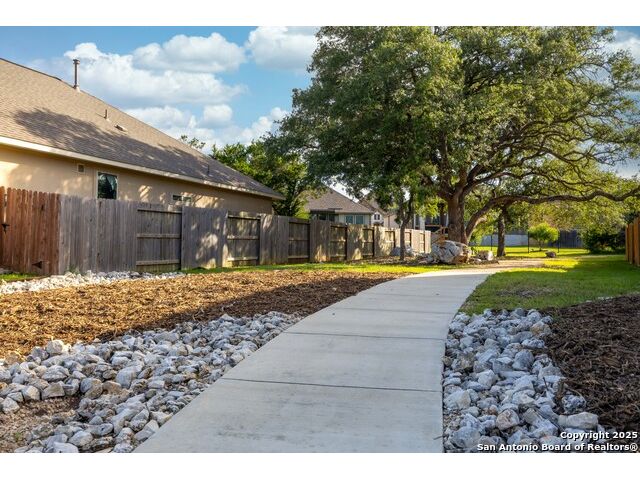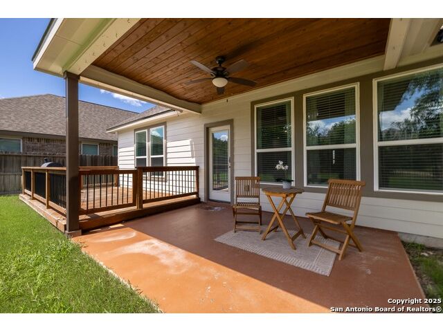 Tucked away on a premium lot shaded by mature trees and backing to the Meyer Ranch trail system, this thoughtfully designed two-story home stands out with both character and flexibility. With 4 bedrooms, 3.5 baths, and multiple bonus spaces, it easily adapts to the rhythm of everyday life. Step inside to a sunlit office just off the entry, enclosed with glass French doors-ideal for remote work, a studio, or study space. The kitchen, dining, and living areas flow together, creating a welcoming environment for gatherings large or small. The kitchen features stainless steel appliances, a large center island, gas cooking, and a generous walk-in pantry. Just beyond, the first-floor primary suite offers backyard views, a spacious en-suite bath with walk-in shower, and an oversized closet. Upstairs, a second living area provides room to spread out, while the enclosed media room is ready for movie nights or weekend gaming. Three additional bedrooms complete the upper level-one with its own en-suite bath, perfect for guests or multigenerational living. The other two share a well-appointed hallway bath. Outdoors, enjoy an extended covered patio and a deck-perfect for grilling, entertaining, or relaxing in the shade. Life in Meyer Ranch means more than just a beautiful home-it's a connected lifestyle. Residents enjoy access to two amenity centers: The Haus, which includes the fitness center and resort-style pool, and The Hall, a dedicated community center for neighborhood events. The community also features the historic Heimer House, a preserved landmark that adds charm and heritage. With scenic trails, a splash pad, dog park, and the lively Community Green-known for concerts, food truck nights, and seasonal events-Meyer Ranch offers a truly one-of-a-kind living experience. With a functional layout, upgraded features, and every space move-in ready, this turnkey home offers the rare combination of comfort, convenience, and community-ready for you to enjoy from day one.