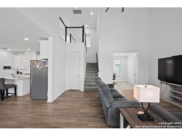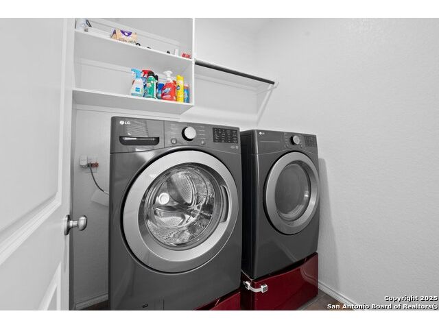 A LOW 4.875% VA ASSUMABLE RATE IS AVAILABLE IF QUALIFYING. Stunning Perry Homes Build with Energy-Efficient Upgrades! This beautifully designed two-story home offers soaring ceilings, an open-concept layout, and a seamless blend of comfort and function. The main floor features a spacious living area, private home office with French doors, and a kitchen built for entertaining-complete with an island, breakfast bar, and walk-in pantry. The downstairs primary suite is a true retreat, showcasing a spa-like bath with dual vanities, an oversized glass-enclosed shower, and a generous walk-in closet. Upstairs you'll find two additional bedrooms and a versatile game room. Enjoy outdoor living on the covered patio with a fully landscaped yard and sprinkler system. The community features a resort-style amenities center with a sparkling pool, pickleball court, playground, and an expansive covered pavilion with plenty of seating-perfect for gatherings and weekend hangouts. Conveniently located just minutes from Rogers Ranch H-E-B, with easy access to dining, shopping, and major highways. Bonus features include a mudroom, half bath off the two-car garage, and laundry room with storage. Built with energy efficiency in mind: tankless water heater, radiant barrier, Low-E windows, and more. Smart layout, premium finishes, and builder warranties still in place-this one checks all the boxes! The Refrigerator, washer, and dryer are included with the sale! Schedule your tour today.