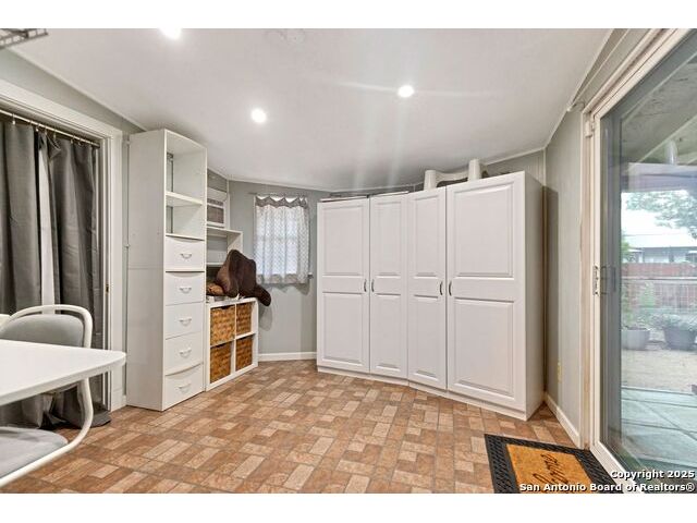 Generational Home with 4BR/2.5BA, Two Detached ADUs (Accessory Dwelling Unit), Outdoor Living & Smart Upgrades - This rare 2,110 sq. ft. property offers 4 bedrooms, 2.5 bathrooms, and two detached, climate-controlled ADUs-ideal for multi-generational living, home business use, or guest space. Located just 6 miles from San Antonio Airport in a peaceful residential enclave. Property Highlights: Two Converted ADUs: One is a cozy tiny home-style unit; the other a full home gym or studio-both climate-controlled with Smart LG AC units and skylights for natural light. ADA-Accessible Bathroom: Widened entry, grab bars, and accessible design make this home ideal for multi-generational or mobility-conscious living. Built-in Shelving for stylish, functional storage. Luxury Vinyl Plank Flooring throughout the kitchen, living room, and dining room. Upgraded Kitchen: Reverse osmosis water filter, (no more buying bottled water), instant hot water spigot, and new disposal (2025). Outdoor Sink and entertaining-ready backyard. Massive Laundry/Workshop with built-ins and magnifying task station. Ring Doorbell + Floodlight Camera, ADT Security, and automatic perimeter lighting. New Furnace (2024) Rare Double-Wide Driveway-grandfathered in. A rare chance to own a home that grows with your needs-ideal for families, caretakers, creatives, or remote workers. Schedule your tour today-this unique generational property won't last!