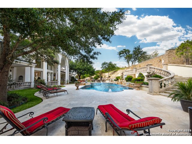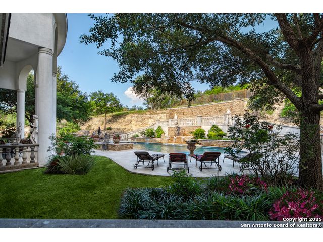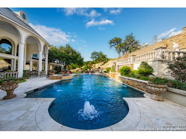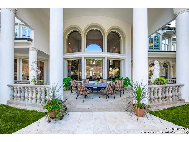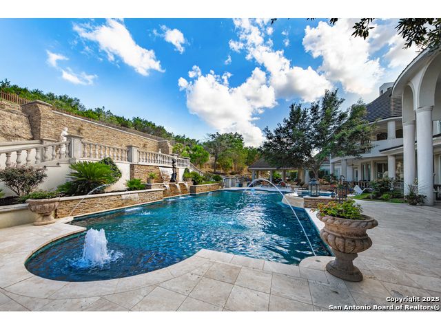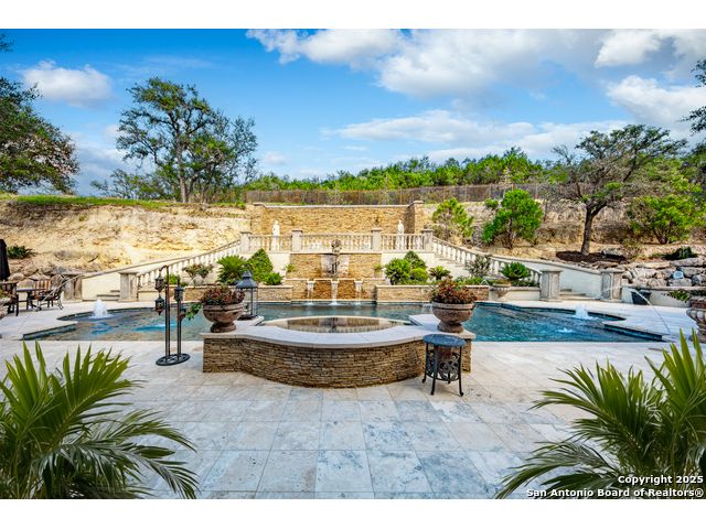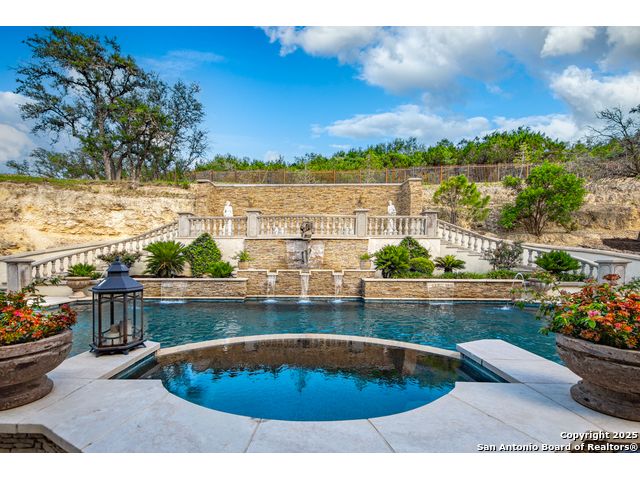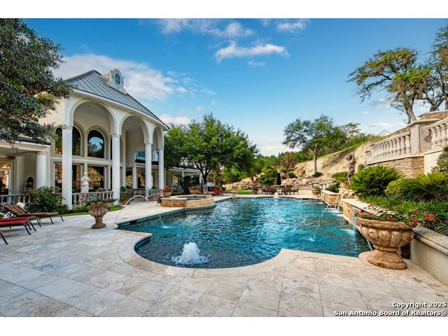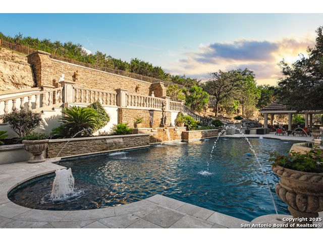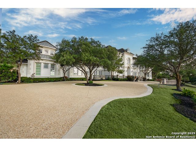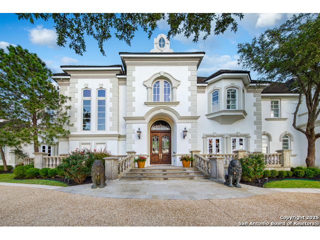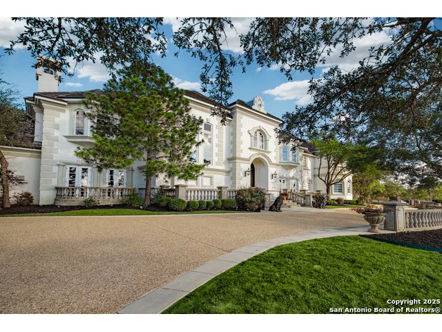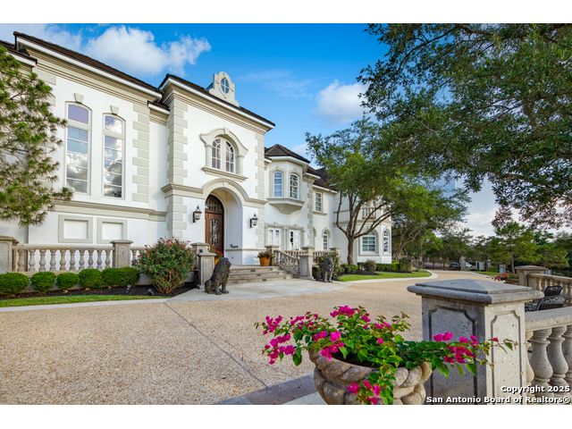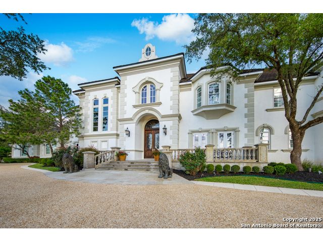This ethereal mansion on a hilltop awaits the most discriminating buyer. A timeless French classic, 2 Admirals Way is an architectural work of grandeur. From intricate wrought iron private gates ushering one into ultimate privacy, the estate offers a warm and welcoming vibe inviting you through lushly landscaped grounds and into this glorious place. Towering ceilings and large plate windows create banks of glass enticing the outside to marry the inside elevating this home and accentuating all of its other wonderful features. Impressive grand rooms offer big views of the stunning Hollywood styled pool, spa and gazebo which are perfectly situated to incorporate outdoor living options into the glamorous and warm interior. The Owner's wing is ever so luxurious with its rich and spacious bath, exercise room and formal study/library. Impeccably maintained, this 7 bedroom, 8 bath home layout lends itself to staycations for family and friends and has played host to film productions and gorgeous weddings. Live among the most prestigious estates in The Crescent at The Dominion and enjoy a lifestyle of the rich and famous. More photos and video will be coming soon. NICHE Properties is proud and fortunate to bring you a next level exquisite offering in the prestigious guarded and gated neighborhood of The Dominion...San Antonio's premier address. SELLER IS NOW OFFERING PRIVATE FINANCING.