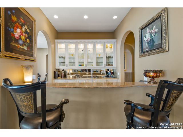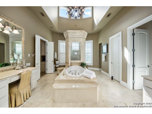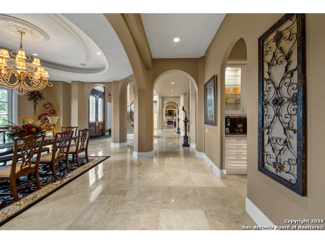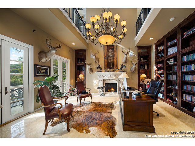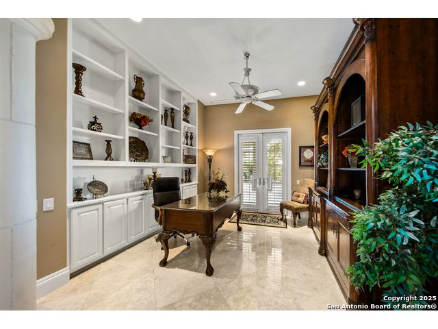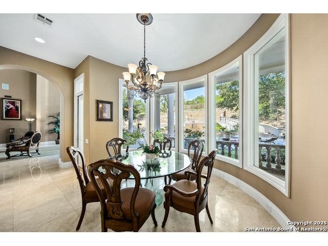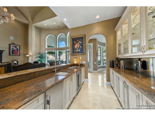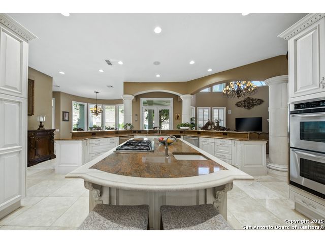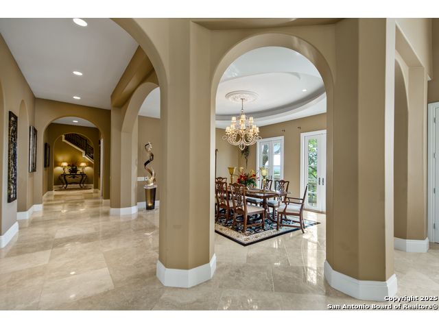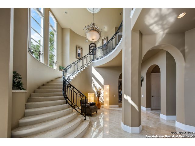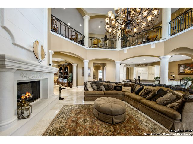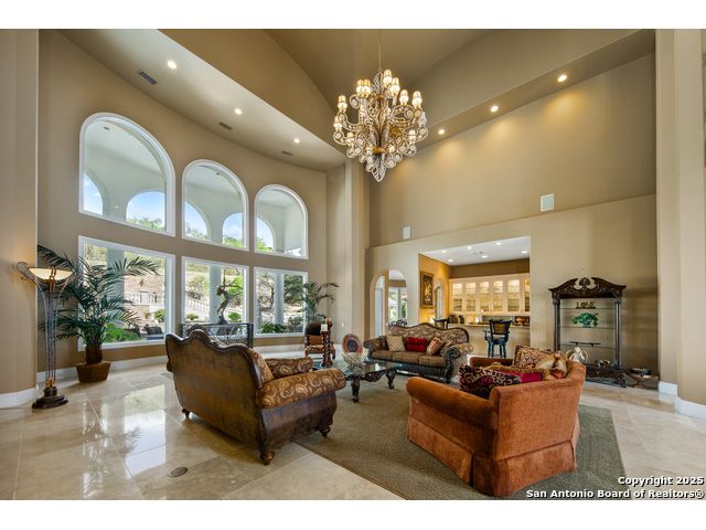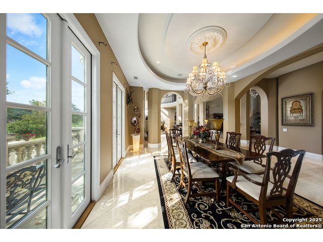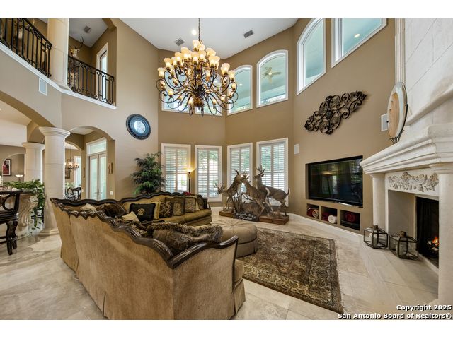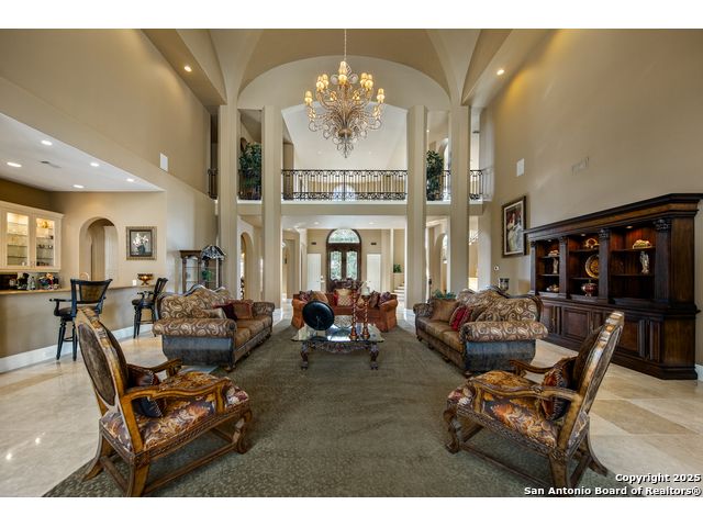 This ethereal mansion on a hilltop awaits the most discriminating buyer. A timeless French classic, 2 Admirals Way is an architectural work of grandeur. From intricate wrought iron private gates ushering one into ultimate privacy, the estate offers a warm and welcoming vibe inviting you through lushly landscaped grounds and into this glorious place. Towering ceilings and large plate windows create banks of glass enticing the outside to marry the inside elevating this home and accentuating all of its other wonderful features. Impressive grand rooms offer big views of the stunning Hollywood styled pool, spa and gazebo which are perfectly situated to incorporate outdoor living options into the glamorous and warm interior. The Owner's wing is ever so luxurious with its rich and spacious bath, exercise room and formal study/library. Impeccably maintained, this 7 bedroom, 8 bath home layout lends itself to staycations for family and friends and has played host to film productions and gorgeous weddings. Live among the most prestigious estates in The Crescent at The Dominion and enjoy a lifestyle of the rich and famous. More photos and video will be coming soon. NICHE Properties is proud and fortunate to bring you a next level exquisite offering in the prestigious guarded and gated neighborhood of The Dominion...San Antonio's premier address. SELLER IS NOW OFFERING PRIVATE FINANCING.