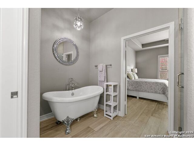 Welcome to 134 Gaucho! The sellers are being relocated for work and sad to say goodbye to this stunning home they put lots of love and money into. This property would be the perfect place for a Lock n Leave home. Year-round yard maintenance front and rear is included in HOA fees for this neighborhood only. Sellers will also consider leaving the home fully furnished with an acceptable offer. Discover this beautifully upgraded one-story home in the prestigious, and only garden home neighborhood of Encinal, in the Award Winning Esperanza subdivision of Boerne today. Built in 2017 and meticulously enhanced with over $100,000 in recent improvements, this 3-bedroom, 2.5-bathroom home boasts 2,164 sq. ft. of luxurious living space with thoughtful design, high-end finishes and elegant interiors throughout. New interior paint Reflection by Sherwin Williams in October 2025. Enjoy the charm of 4-inch wide plantation shutters throughout the home, as well as 9 inch wide Vinyl Plank flooring by Couture. This open-concept floor plan blends comfort and function with three generously sized bedrooms, a dedicated dining space, and a chef-friendly kitchen overlooking the main living area. A Spa-Inspired Primary Suite includes a standout 72-inch freestanding clawfoot soaking tub ideal for luxurious relaxation. Outdoor Living Redefined: Entertain or unwind on the newly added 4-foot rear patio extension, perfect for enjoying Hill Country sunsets. The backyard is a serene retreat, and the entire property is professionally landscaped by Pinnache with stone borders, baseball-sized river rock, and native Texas plants for sustainable beauty and privacy. Located on a quiet street in Esperanza, known for top-tier amenities and lifestyle, this amazing home is just minutes to downtown Boerne and conveniently accessible to San Antonio. This home exemplifies Hill Country luxury with modern updates, natural beauty, and impeccable care. Schedule your private showing today - this amazing home is a pleasure to see!