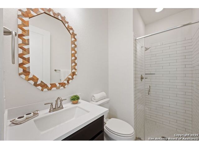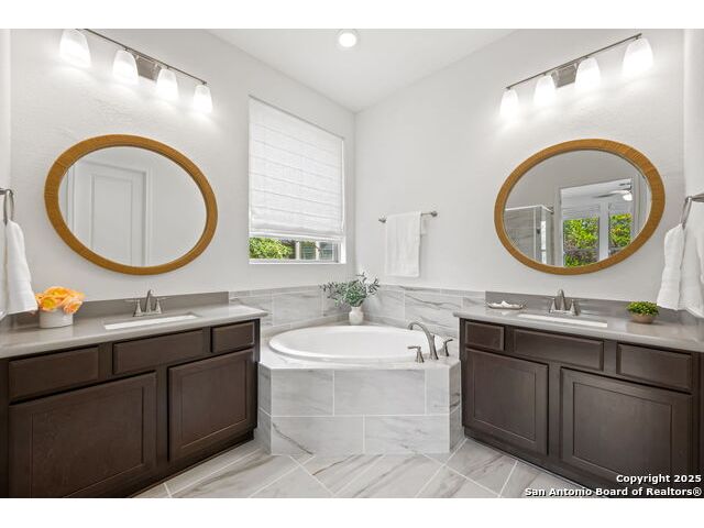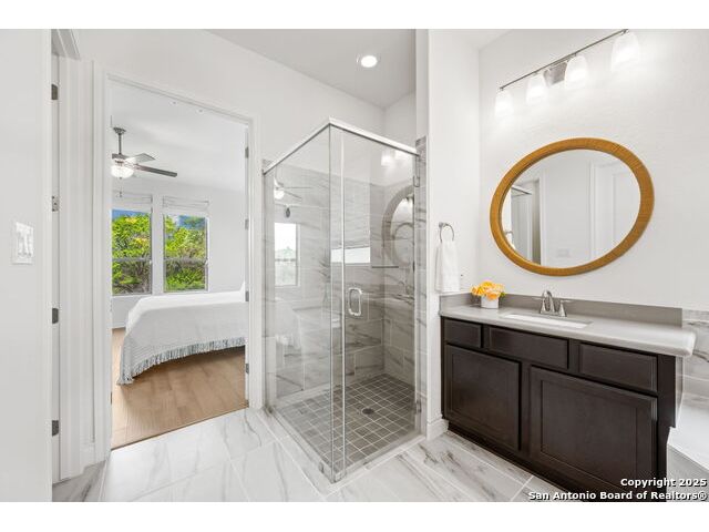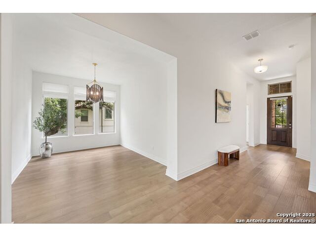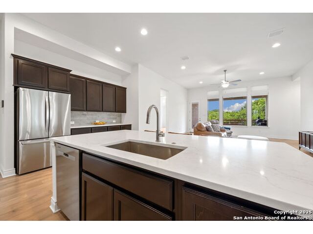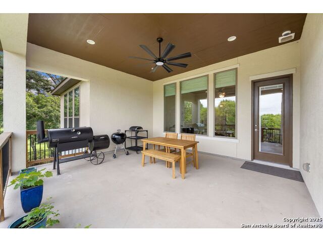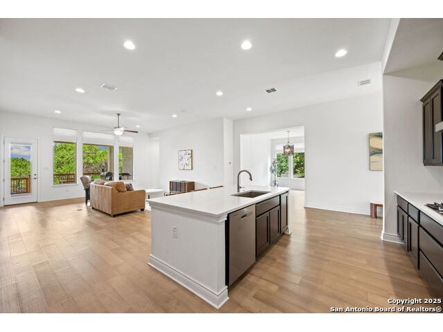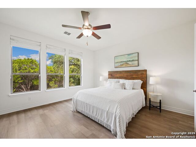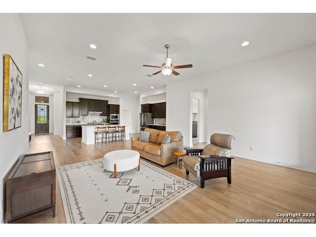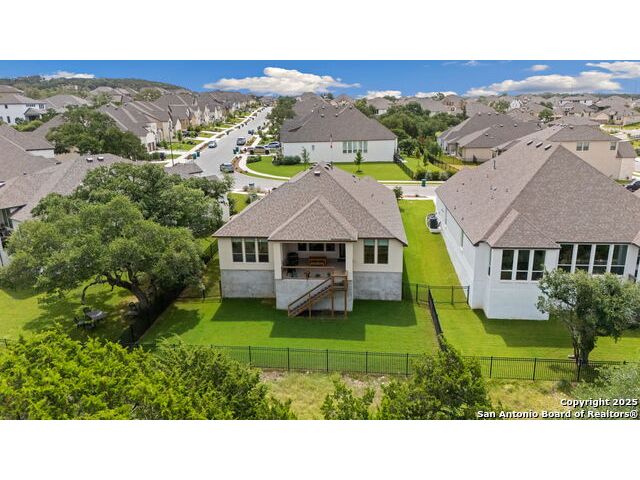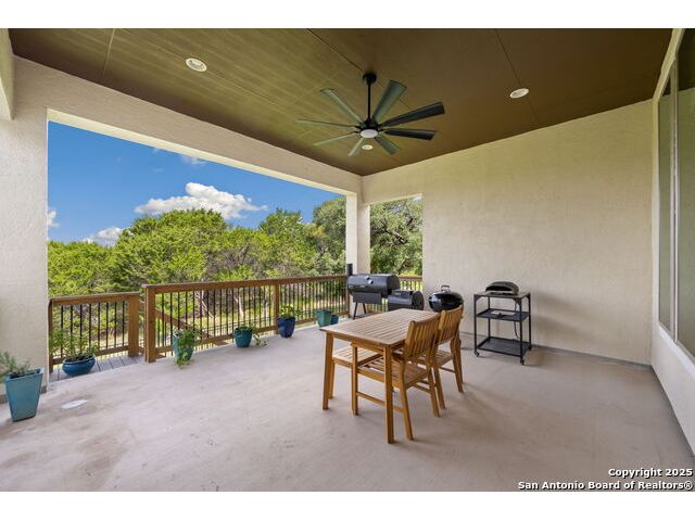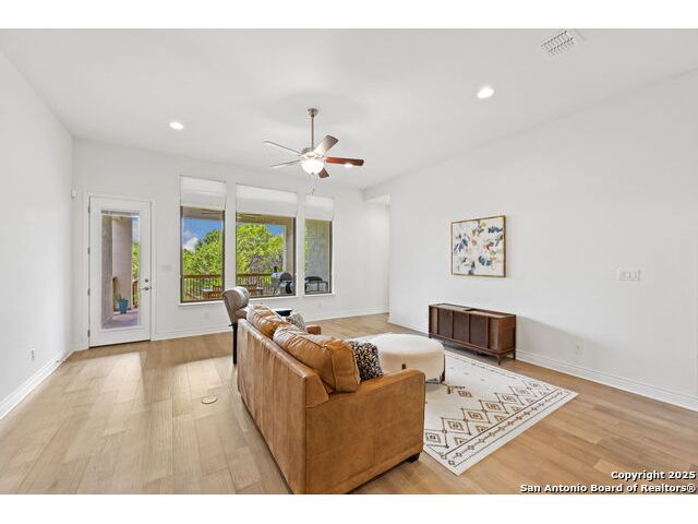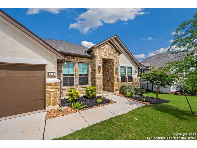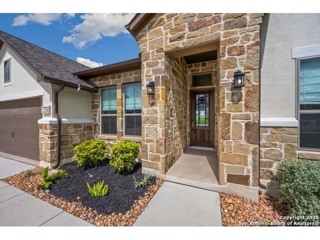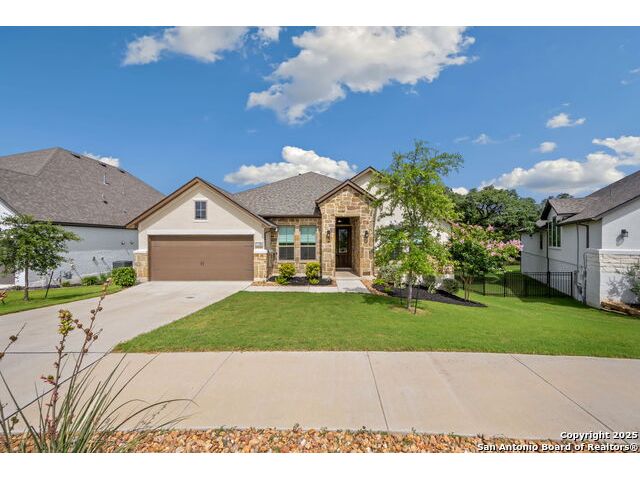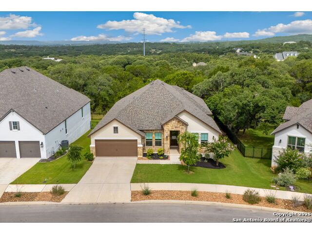 From the moment you pull up, you can sense this is more than just a house - it's a place meant to be lived in, loved, and enjoyed. The clean lines of the stone and stucco exterior are framed by carefully manicured landscaping, welcoming you to step inside and see what life could look like here. As you walk up the front path and through the solid wood door, the home greets you with high ceilings, rich birch hardwood flooring, and a long, bright entryway. Window coverings have already been thoughtfully added throughout the home, so comfort and privacy are yours from day one. Farther in the home opens up - and suddenly, it all feels effortless. The living room is airy and open, with a wall of windows offering calming views of mature trees beyond the backyard. You picture cozy evenings on the couch, movie nights, and maybe even weekend brunches with friends. The living area flows seamlessly into the kitchen, where a massive island invites casual breakfasts or helping hands during holiday baking sessions. Dark cabinetry, sleek quartz counters, and stainless-steel appliances offer both beauty and function. A built-in water filtration system piped directly to the refrigerator provides convenience and quality in every glass. Whether you love to cook or just enjoy a gorgeous kitchen, it's a space ready for whatever rhythm your life holds. When it's time to unwind, you retreat to the primary suite tucked away at the back right corner of the home. Large windows look out onto the peaceful backyard setting with natural privacy provided by neighboring trees. In the en-suite bathroom, you're greeted by an oversized shower, a soaking tub that practically calls your name, and two separate vanities topped with beautiful quartz countertops. It's a space that feels both refined and restorative. Back toward the front of the home, two additional bedrooms are quietly positioned off a private hallway to the right, sharing a well-designed Jack and Jill bathroom. Each vanity is topped with engineered marble counters and features elegant fixtures that tie the space together. The seller has also added custom lighting in these bedrooms, creating a warm, elevated ambiance. Across the entry to the left, a third bedroom offers its own sense of privacy, with a matching full bath just steps away - perfect for guests or a dedicated office. Just beyond the kitchen, everyday tasks are made easier in the spacious laundry room, upgraded with a deep stainless steel utility sink. A full water softening system has also been added, supporting the home's high-end finishes and making daily chores a little more enjoyable. Around the corner, a generous game room offers flexibility for play, creativity, or quiet reflection - with windows that look out onto the treetops beyond the backyard. Whether it becomes a music space, media room, or library, the possibilities are endless. Step onto the expansive covered back patio and it's clear this space was made for special moments. The seller added a large ceiling fan overhead for year-round comfort, and there's room to grill, dine, and unwind while enjoying the privacy offered by the trees and the separation from rear neighbors. Two added fence gates provide easy access, and an electrical connection has been installed to accommodate a generator - offering added peace of mind during stormy seasons. This is a home designed not just to be seen, but to be lived in - a place where every room serves a purpose and every upgrade was made with care. It's spacious, stylish, and quietly set in a vibrant Boerne, TX neighborhood offering three community swimming pools, plus easy access to nearby school, shopping, dining, and everyday conveniences. All that's left is to make it yours.