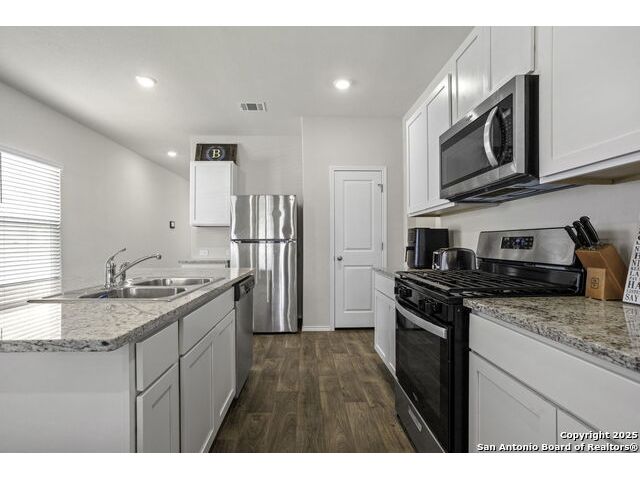 The Jasmine is a two-story home that features 4 bedroom, 2.5 baths, 2-car garage. The gourmet kitchen includes granite counter tops, stainless steel appliances, and an open concept floorplan with the kitchen leading to the dining and family room area. A powder bath is located off the entry foyer nook. The private downstairs first bedroom is built with an attractive ensuite which includes a walk-in shower, water closet and grand walk-in closet. A versatile loft greets you at the top of the stairs and is a perfect entertainment area. All secondary bedroom and second full bath are also located upstairs. The rear covered patio located off the family room comes as a standard built in. Additional features include sheet vinyl flooring in entry, living room, and all wet areas, granite bathroom counter tops, white cabinets (per plan) and full yard landscaping and irrigation.