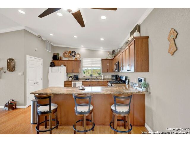 BREATHTAKING HILL COUNTRY VIEWS, MODERN UPDATES, 2ACRES AND A RV BAY Welcome to your Hill Country dream home with over 2000 sq ft! Perched on 2 peaceful acres with stunning long-range views, this beautifully updated two-story home offers the perfect blend of comfort, style, and space. The reverse two-story allows for all the bedrooms and a full bathroom with laundry on the main floor, while upstairs you can find amazing views, a fully renovated kitchen with modern finishes, another full bathroom and a completely open-concept living space. Both bathrooms have been completely updated with stylish, high-quality touches you'll love including a jetted soaking tub and floor-to-ceiling tiled shower. Outside, you'll find a large balcony on the second floor as well as a large patio for the first floor, a detached two-car garage with a convenient half bath, plus an RV bay ideal for additional recreation, storage, or welcoming guests with their own setup. The circle driveway provides easy access and plenty of parking. Other conveniences included a tankless water heater, a water softener, propane connection with 100gal tank, and new garage door opener. With serene surroundings and thoughtful updates throughout, this home is a true must-see. Don't miss your chance to own a slice of the Hill Country with modern comfort and timeless charm.