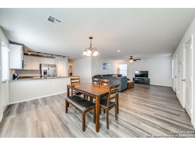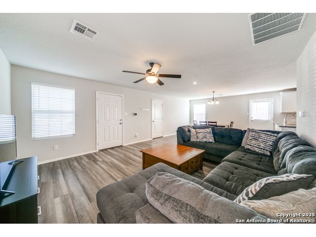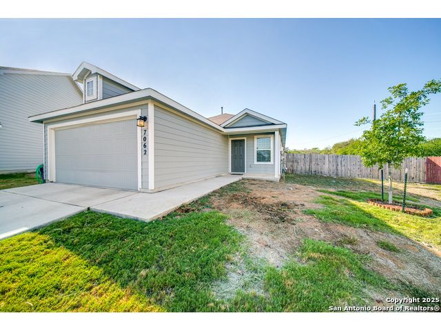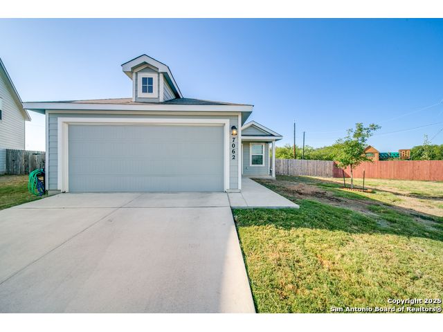Get ready to jump on this deal yall! Welcome to 7062 Dominic Valley-an inviting 3-bedroom, 2-bath single-story home that offers the perfect mix of comfort, style, and convenience! Located in a fast-growing area of San Antonio, this well-maintained home is move-in ready and loaded with great features. Step inside to a bright, open floor plan with high ceilings, lots of natural light, and a spacious living area that flows right into the kitchen and dining space. The kitchen includes granite countertops, stainless steel appliances, a large island, and a walk-in pantry-perfect for everyday meals or entertaining friends and family. The private primary suite features a roomy bedroom, a double vanity, walk-in shower, and a large walk-in closet. Two additional bedrooms and a full guest bath give you space for kids, guests, or a home office. Enjoy outdoor living on the covered patio, with a low-maintenance backyard that's great for relaxing or having a BBQ. This home is just minutes from Lackland Air Force Base, SeaWorld, Loop 1604, Hwy 90, and plenty of shopping, dining, and schools. Whether you're military, a first-time buyer, or just looking for a great single-story home in a prime location-this one is a must-see! Come take a look at 7062 Dominic Valley and picture yourself at home!