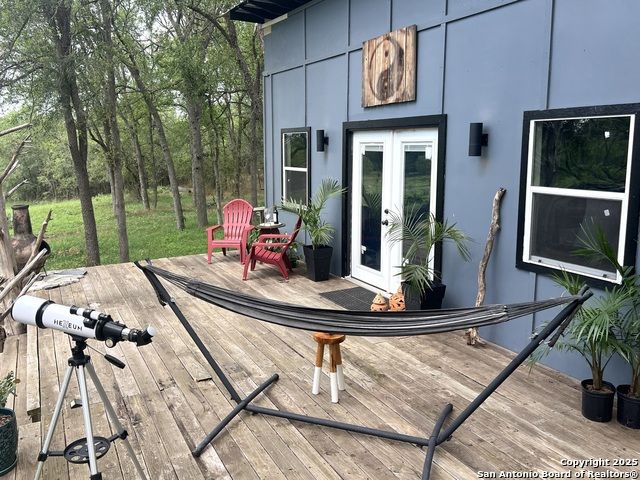 Discover a modern hill country retreat that defies convention-an artfully designed studio on 8+ secluded acres of Texas beauty, perfect for tranquility and accessibility. Ready for immediate occupancy or development, this self-sustaining property has water, electric and septic installed and live. ***A thoughtfully designed living space features an open-concept floor plan with customizable concrete floors, soaring wood-accented ceiling and designer lighting throughout. A full kitchen with stainless steel appliances, floating shelves and butcher-block countertops; and a walk-in shower with river rock flooring make this a lifestyle sanctuary for anyone who believes a home should inspire. ***8+ fenced acres of meadows and wooded areas feature mature trees, native grasslands and a dry seasonal creek (elevation changes from entrance down to creek for ideal drainage). Outdoor amenities include walking trails, minimal light pollution for exceptional stargazing, an oversized deck with sunset views, wide open spaces for camping, and an abundance of wildlife. ***Location, location, location! Valley Creek Ranches is strategically located just a 30-minute drive to downtown Austin; 11 miles to Austin-Bergstrom International Airport, the City of Bastrop and Tesla's Gigafactory headquarters; 7 miles to F1's Circuit of The Americas (COTA); 9.4 miles to SpaceX, The Boring Company, and future X headquarters; and close to major highways -- HWY 21, HWY 71, HWY 183, and I-35. Commuting is a breeze! ***Perfect for homestead living, STR, agriculture venture, gentleman's ranch, or investment property with unrestricted land use, live utilities, and proximity to Tesla, SpaceX and other tech companies. Whether you're an artist or musician seeking creative solitude, a tech professional wanting a peaceful retreat from the city, or an investor looking for a unique property, this is your chance to own a one-of-a-kind Texas escape in a rapidly growing corridor. Schedule your showing today!