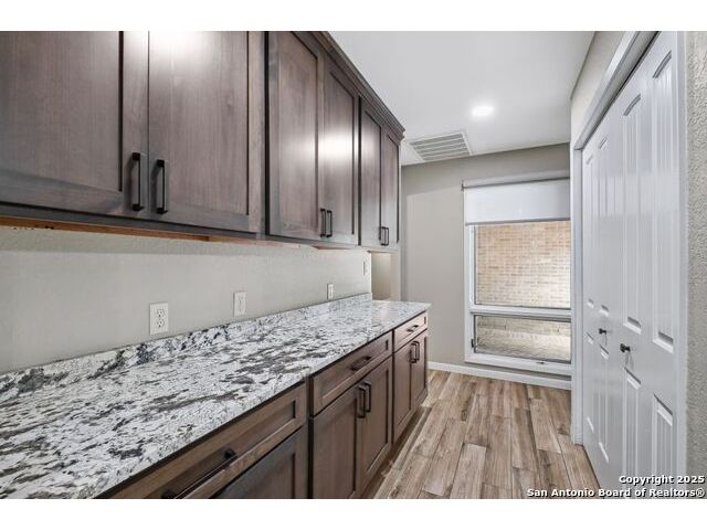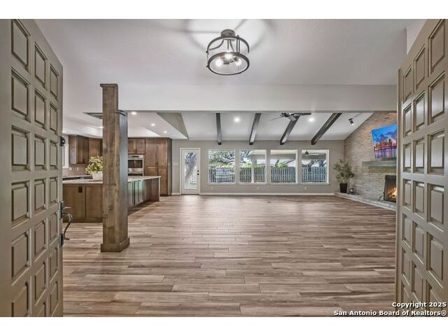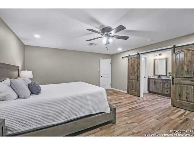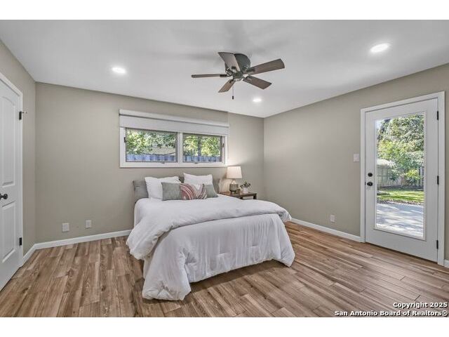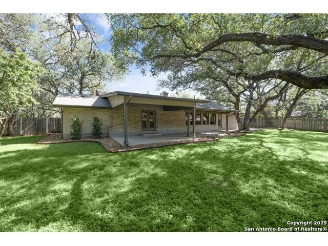 One story home in desirable Hollywood Park Community. Large single story home with four bedrooms and three baths that features an open floor plan, a large lot with mature trees on a short street with little through traffic. There are four generous bedroom. The master has two walk-in closets and a exterior exit to a backyard covered patio. There are three other generous bedrooms, one with an ensuite bath, walk-in closet and exterior exit to a smaller patio in the backyard. Kitchen boasts large island, dining area, gas stove, double oven and built in microwave drawer. All countertops in the home are granite. Large closets and custom cabinets provide ample storage space. Perfect laundry space with washer and dryer closet, custom cabinetry and granite countertop. Windows throughout create abundant natural light. Garage has mini-split air-conditioner and epoxy floor. Big backyard with large covered patio.