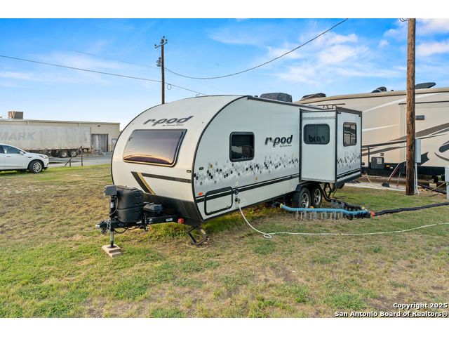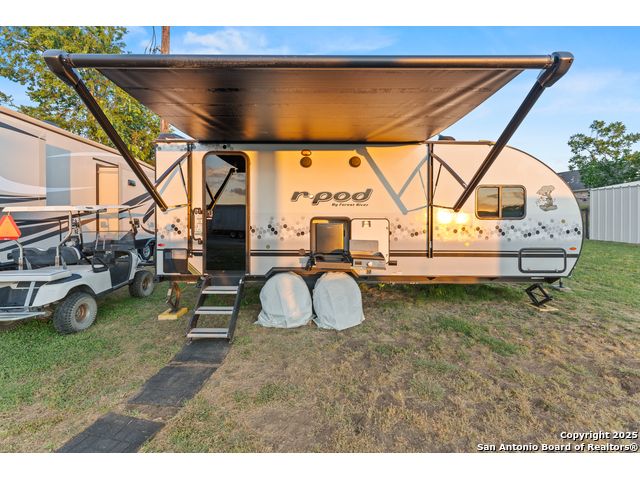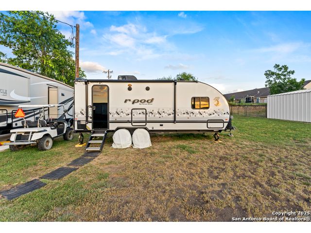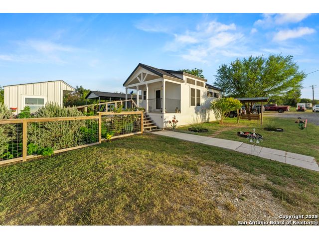 Welcome to a rare gem just outside the city limits of Bandera, Texas-only one minute from the charm and activity of downtown yet offering the peace and space of country living. This beautifully maintained property is bursting with income-generating potential and ready for your next venture or dream lifestyle. A cozy and modern tiny home, purchased in 2019 offers a comfortable place to live or rent out for additional revenue. The property features two concrete RV pads and a total of three RV hookups. Included in the sale is a 2022 Forest River R-Pod 202, a modern and stylish travel trailer. Horse lovers will appreciate the two horse stalls in the back, complete with a fenced-in area to safely accommodate animals. Ideal for gatherings or guests, there's a covered picnic area perfect for entertaining. Storage is no issue here-two outbuildings provide ample space, one with a two-car carport and extra storage, and another dedicated solely to storage needs. There's also a well house with more storage, though the tiny home and RV spots benefit from the reliability of city water. This property has been lovingly cared for and is truly move-in or rent-out ready.