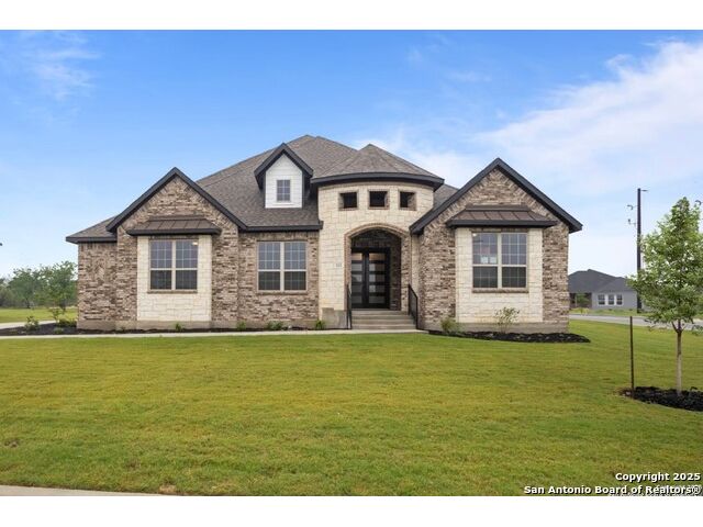 Welcome to the Summerlin, a beautiful one-story sprawling home. The covered front porch and fabulous foyer flow into the spacious family room with views of the covered outdoor living beyond. The stately kitchen is complete with oversized island, plenty of cabinet storage, and large walk-in pantry. Situated just past the kitchen is a roomy media room. The stunning primary suite features two large walk-in closets and a luxurious bathroom with separate vanities, expanded counter space, oversized soaking tub, large walk-in shower, and private water closet. Secondary bedrooms feature walk-in closets two with a shared full bathroom and one with a private bath, which is perfect for a mother-in-law suite. Make it your own with The Summerlin's flexible floor plan. Just know that offerings vary by location, so please discuss our standard features and upgrade options with your community's agent.