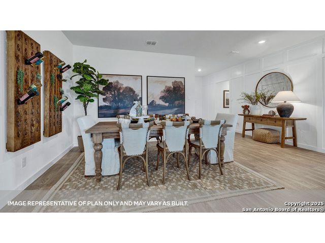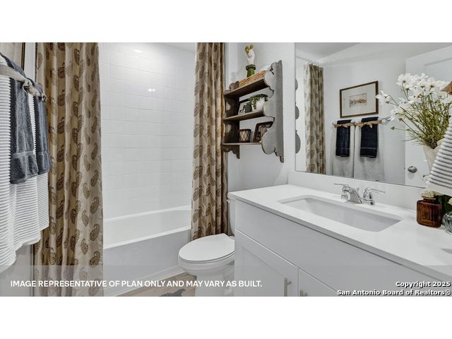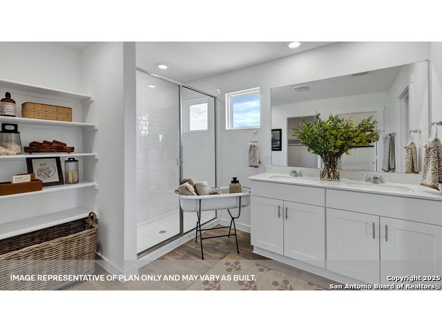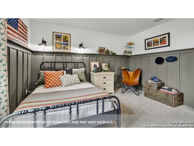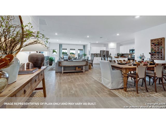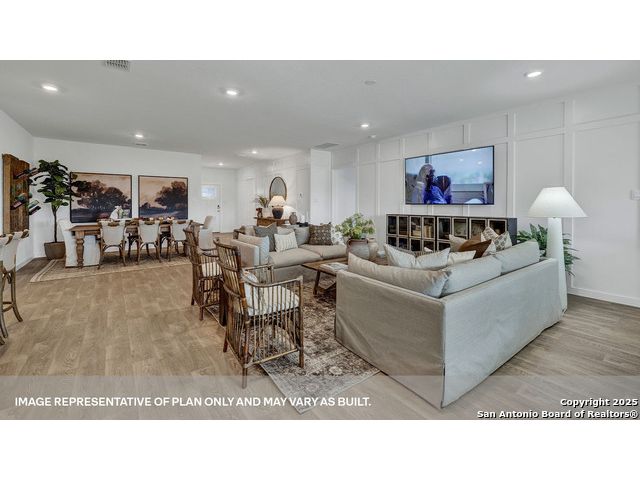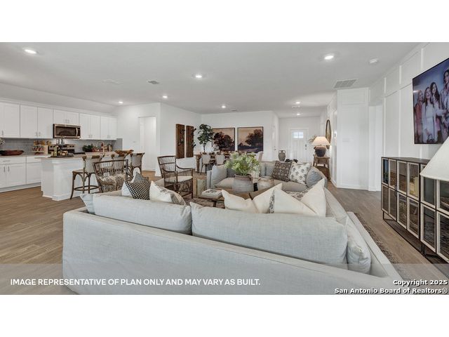OCTOBER ESTIMATED COMPLETION DATE. The Irving is one of our most popular floorplans and is available at Sonoma Oaks in Fredericksburg, Texas. This one-story home includes 5 bedrooms, 3 bathrooms, and a study within 2,594 square feet of living space and 3 car garage. As you enter the home from the covered front porch, you'll cross the foyer to the dining room, family room and kitchen. This large open concept space is perfect for entertaining and everyday living. The kitchen includes an island with undermount sink, quartz countertops, decorative tile backsplash, a corner pantry closet, stainless-steel appliances and 36'' upper cabinets. The utility room with an extra closet is located just off the kitchen. Check out the primary bedroom, located at the back of the home. This oversized bedroom will become your oasis at the end of the day. Enjoy the 5' walk in shower, quartz countertop vanity with double sinks and toilet area with a separate door. A walk-in closet with generous shelving is connected to the bathroom. In the opposite rear corner of the home, you'll find Bedroom 2 and Bath 2. This private space could be perfect for your guests or any family member that needs their own space. At the front of the home, you'll find the additional 3 bedrooms and Bath 3. Each secondary bedroom includes a closet with shelving, and the secondary bathrooms include a shower/tub combination and shelving for extra storage or decor. The study is off the family room and has a built-in closet. With all the space the Irving offers, your family is sure to love this plan. The Irving includes vinyl flooring throughout the common areas of the home and the primary bedroom, and carpet in the secondary bedrooms. All our new homes in Sonoma Oaks feature a covered back patio, full sod, an irrigation system in the front and back yard. This home includes our America's Smart Home base package, which includes a Video Doorbell, Front Door Deadbolt Lock, Home Hub, Thermostat, and Deako Smart Switches.