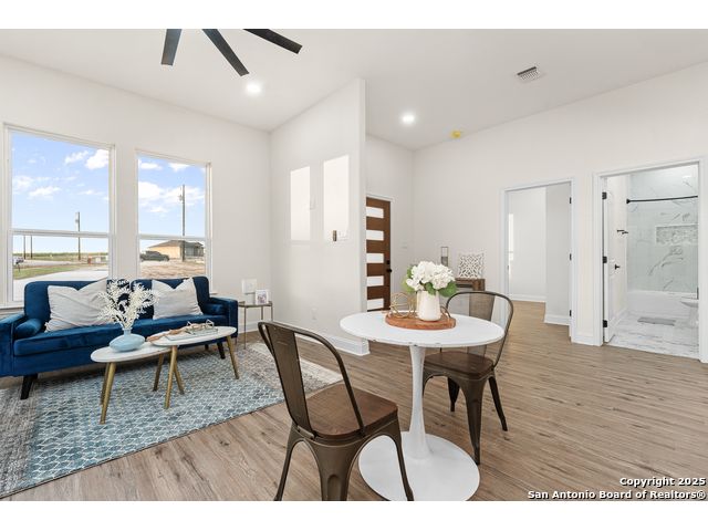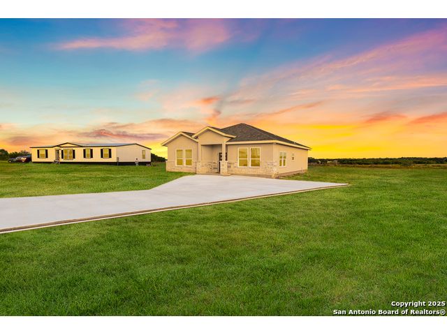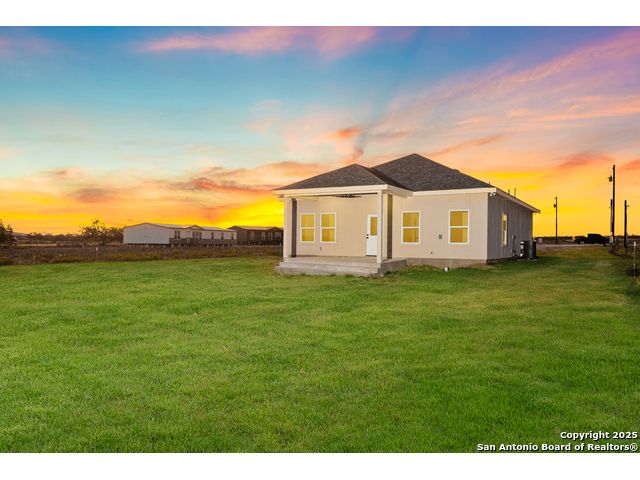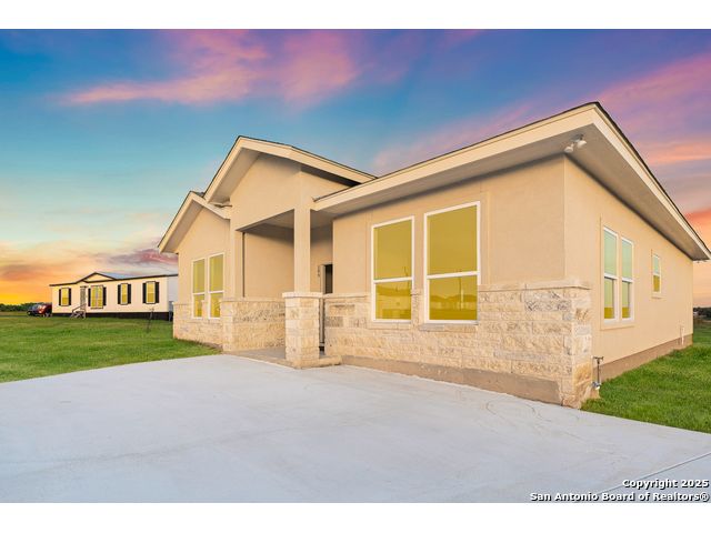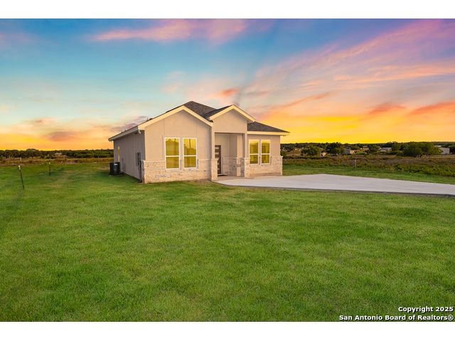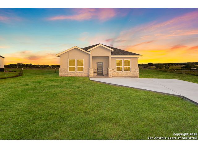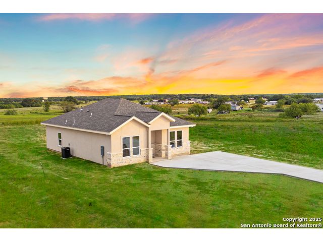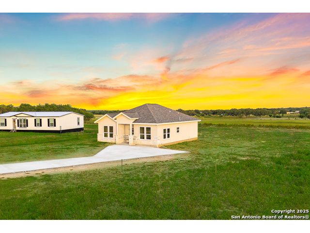 This beautifully designed new construction in La Vernia offers the perfect mix of comfort, space, and fresh style. With three spacious bedrooms and an open-concept layout, the home was built with both everyday functionality and easy entertaining in mind. Large windows bring in natural light throughout, while neutral finishes make it easy to personalize and truly make it your own. The kitchen flows seamlessly into the main living area, creating a central hub for gathering, relaxing, or simply enjoying slow mornings at home. A dedicated flex space provides options for a home office, playroom, gym, or whatever fits your lifestyle. Outside, the property sits on just about an acre, offering endless possibilities-whether you're thinking future pool, garden beds, or space to store all the toys. The covered patio and fenced backyard give you room to enjoy the outdoors right away. Located in La Vernia ISD with easy access to local amenities and a short drive into San Antonio, this home combines peaceful surroundings with modern convenience. Brand new, move-in ready, and full of potential-it's a solid foundation for whatever comes next.