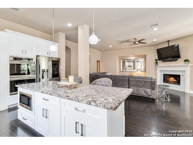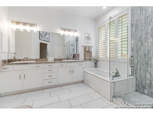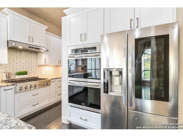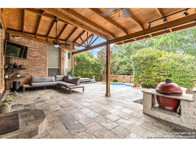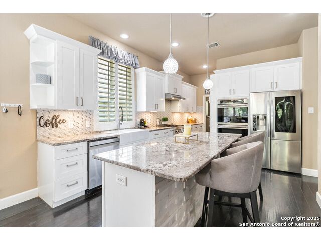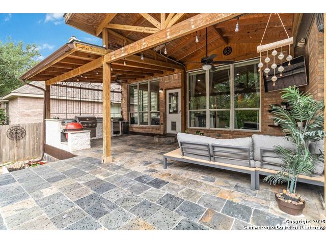 This stunning home is an entertainer's dream inside and out! The backyard retreat offers total privacy with a sparkling pool, relaxing hot tub, well appointed outdoor kitchen, and a covered entertaining space perfect for gatherings year-round. Inside, a gorgeous wall of windows bathes the living spaces in filtered natural light & creates seamless indoor-outdoor flow for effortless entertaining. The stunning kitchen boasts an entertainer's island, six burner gas cooktop, double ovens, walk-in pantry, custom finishes, & abundant storage. The spacious primary retreat overlooks the pool and features a recently renovated, spa-worthy bath with a soaking tub, walk-in shower, and dual vanity. Upstairs, a versatile game and media room with full bath is ready for movie nights or makes a great luxury apartment as shown today. A stylish study with barn doors adds charm and flexibility. Both eat-in kitchen & formal dining. This is the lifestyle you've been waiting for!