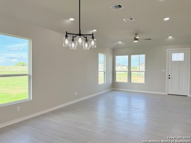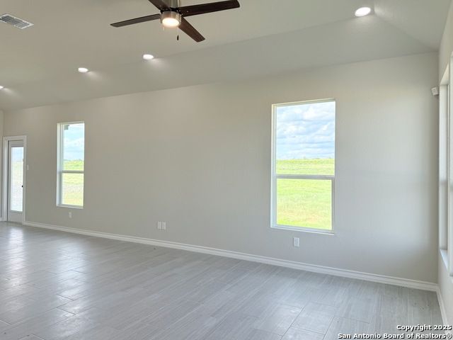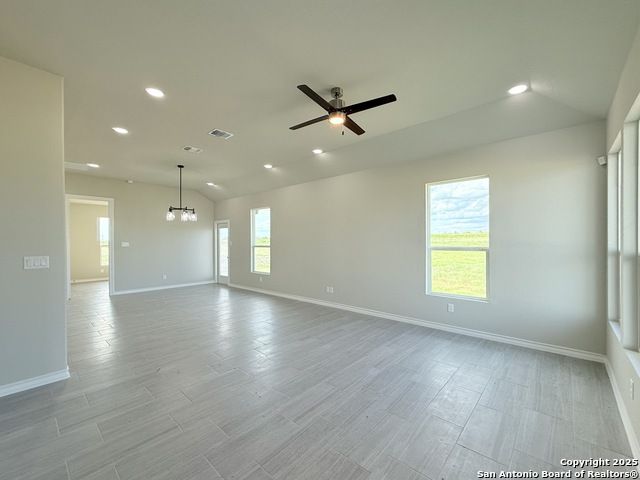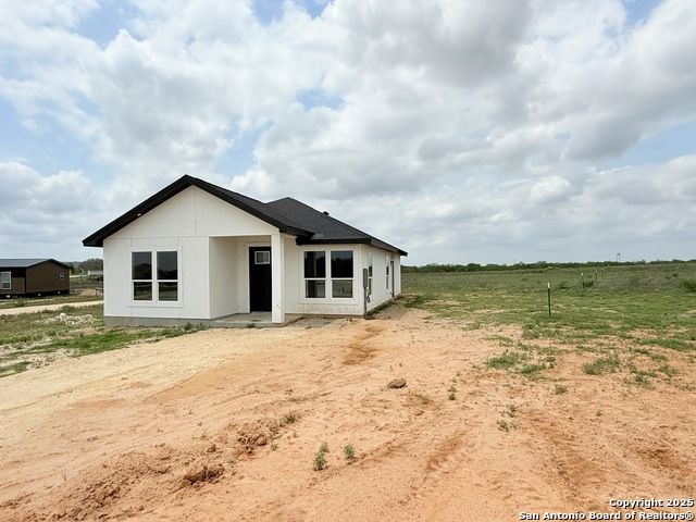 **END OF YEAR PROMOTION $5,000 towards closing costs**. Experience the perfect blend of wide-open in this beautiful 3-bedroom, 2-bath home just minutes from downtown La Vernia and a short 30-minute drive to San Antonio. Nestled on a generous 0.87-acre lot, this single-story home boasts a modern open-concept layout with no interior steps and durable tile flooring throughout. Soaring ceilings and 8-foot doors enhance the open feel, while quartz countertops add a touch of elegance to the kitchen and bathrooms. The spacious primary suite includes a sleek walk-in shower with glass shower doors for added comfort. With plenty of indoor and outdoor space, this property is ideal for anyone seeking comfort, style, and a little extra elbow room. Don't miss the chance to make it yours!