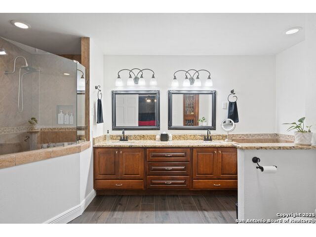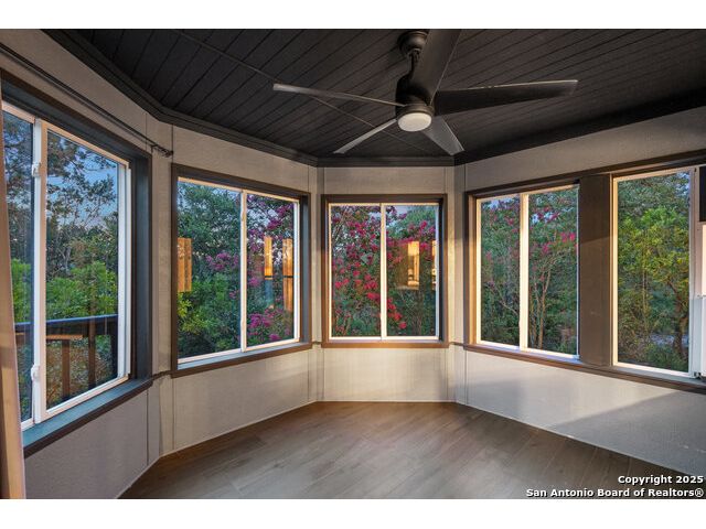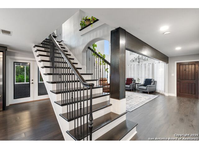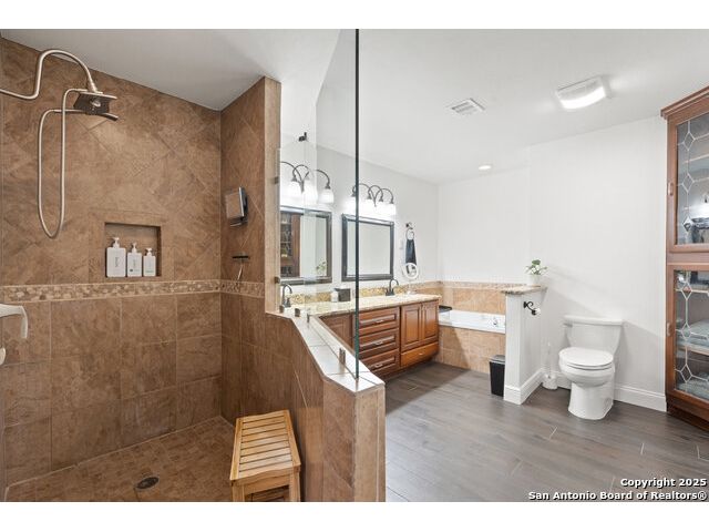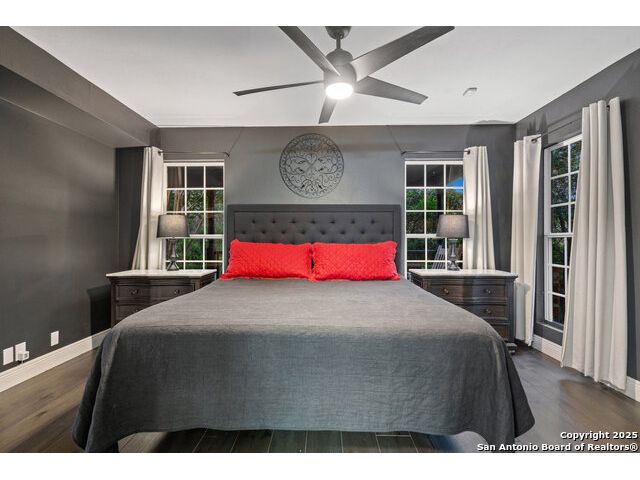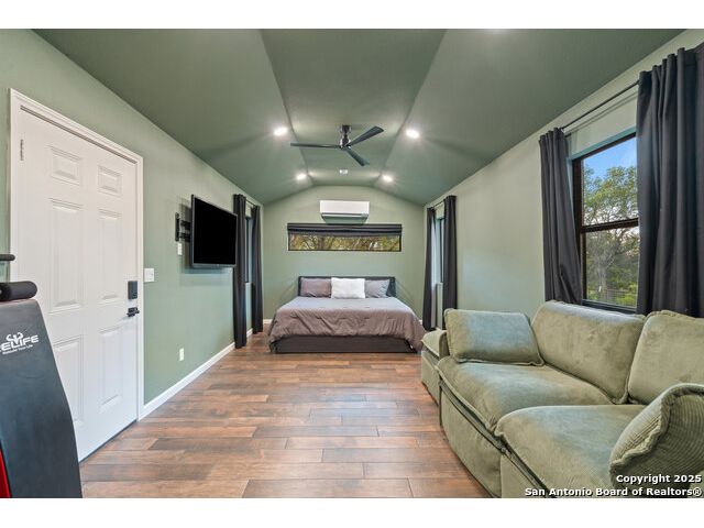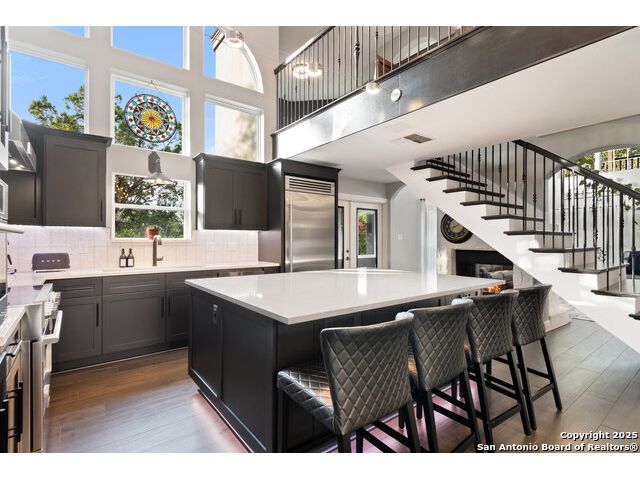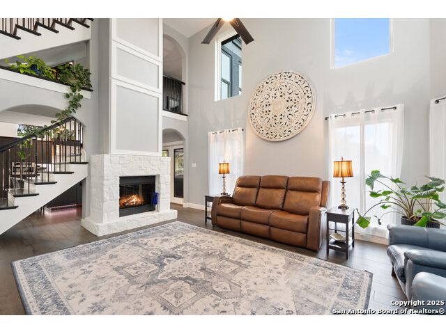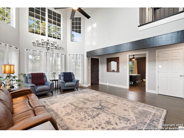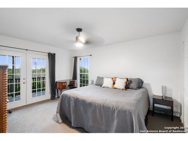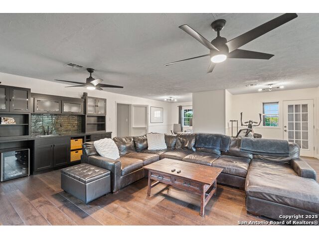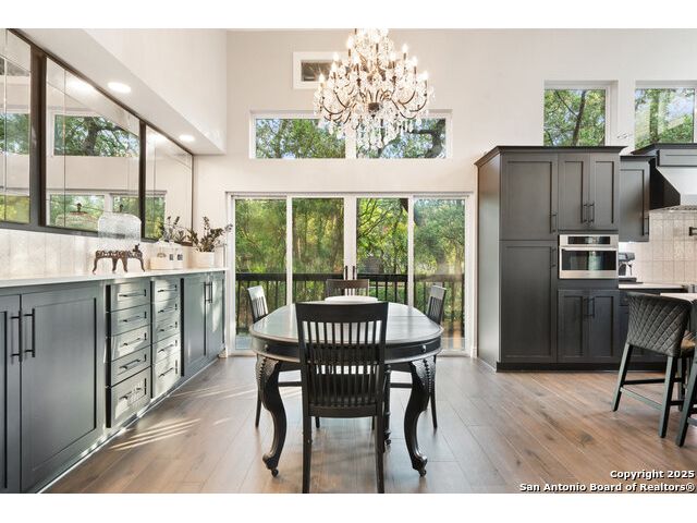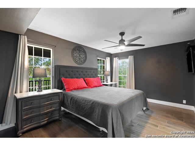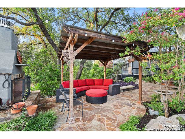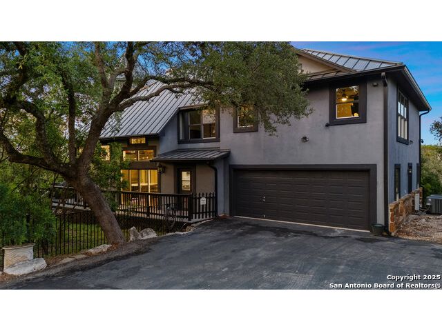 Rare opportunity in River Chase! Ideally situated on a corner lot with two convenient driveways, this exceptional property features a newly built 570 sq ft detached guesthouse, a sparkling pool, and an oversized 2-car garage-all framed by sweeping long-range Hill Country views. Inside, over 3,000 sq ft of remodeled living space showcases soaring ceilings, a double-sided gas fireplace, and abundant natural light. The gourmet kitchen is a true showpiece, with an induction cooktop, built-in refrigerator, custom cabinetry, and generous prep space-perfect for entertaining or culinary excellence. The main-floor primary suite offers a serene retreat, while the second-floor game room with wet bar provides stylish space for leisure and gatherings. Outdoor living is equally impressive, including a private 7'x33' deck off the second bedroom, a third-floor observation deck with panoramic vistas, and inviting poolside spaces. Additional features include a 30-amp RV hookup, EV charger, partial fencing, and a new standing-seam metal roof. Homes with this combination of privacy, acreage, modern updates, and a fully independent guesthouse are highly sought after in River Chase.