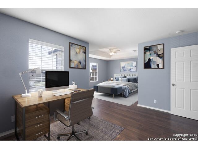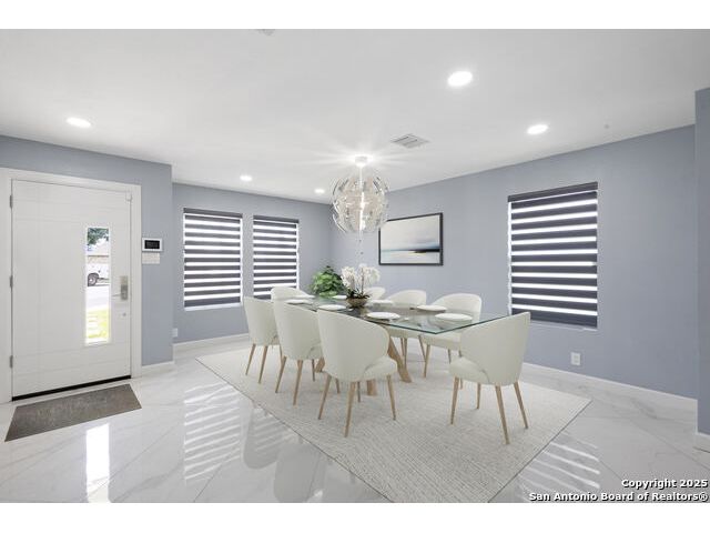 Discover the perfect blend of modern luxury and warm Texas charm at 13102 Oxford Bend. Only five minutes away from UTSA. This exquisite 4-bedroom, 3.5-bath home spans over 3,000 sq ft and showcases an open-concept design ideal for today's lifestyle. Step inside to a spacious dining room with abundant natural light, seamlessly flowing into the gourmet kitchen. The kitchen features quartz countertops, complemented by stainless steel appliances and a large island. This home features two primary bedrooms, one of which is located on the main level. Other highlights include a large family/game room upstairs and office space in the upstairs primary bedroom. The backyard features a large patio with a pergola, a storage shed, a mini basketball court, and ample space for play. Extras: Custom window covers, water softener, Ring Security alarm system, outdoor cameras, manifold water cutoff, and epoxy floor covering in the garage. Located near premier shopping areas, parks, dining, and top-rated schools, this home offers an unparalleled lifestyle opportunity. Schedule your private showing today!