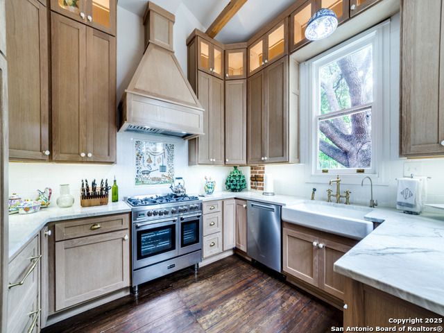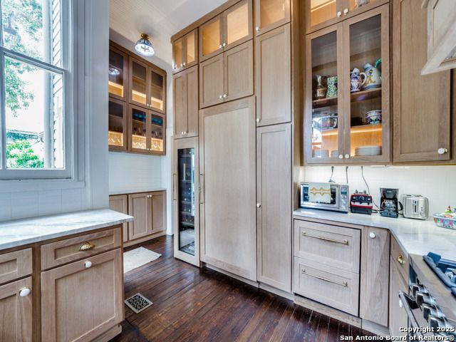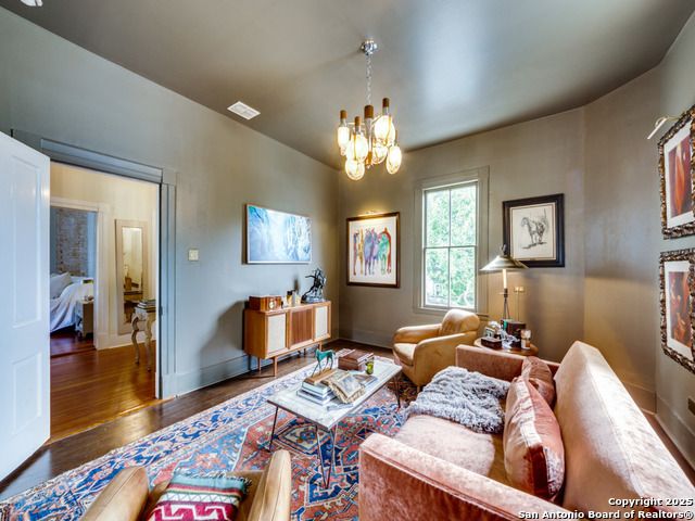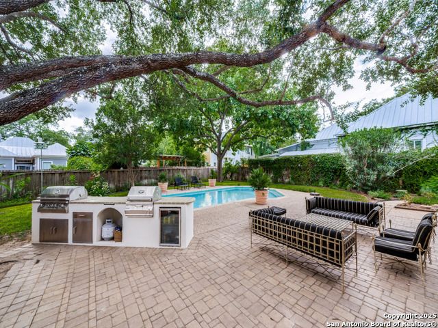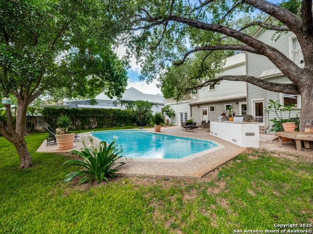 Welcome to 129 Wickes, a beautifully preserved 1930 gem nestled in the highly sought-after King William Historic District. Inside this charming 2-bedroom, 2-bath home, you'll find timeless character paired with thoughtful updates. High ceilings, original woodwork, and tall windows that bring natural light into every room. The kitchen and baths have been tastefully updated. The flexible floor plan allows for two bedrooms or one bedroom with a spacious bonus room-ideal for a home office, studio, or guest space. With a lush outdoor space, this home offers a private backyard oasis with a beautiful in-ground pool and two outdoor grills perfect for relaxing, cooking, or entertaining. Walkable to restaurants, shops, and the River Walk, 129 Wickes offers the rare opportunity to own a piece of San Antonio history. Schedule your showing today to see this beauty.