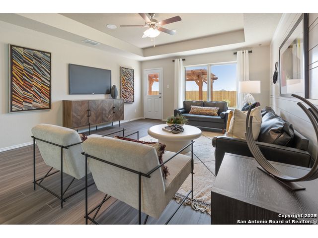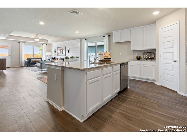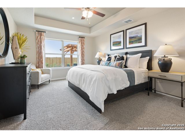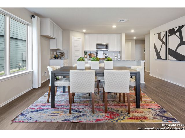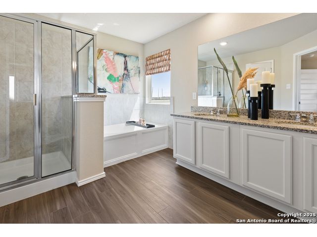 Love where you live in Hunters Ranch in San Antonio, TX! The Cortona floor plan is a spacious 1.5 story home, featuring 4 bedrooms (3 down, 1 up), 3 bathrooms, a game room, and a 2.5-car garage. This home has it all, including vinyl plank flooring throughout the common areas! The gourmet kitchen is sure to please with 42" cabinets, granite countertops, and stainless-steel appliances. Retreat to the first-floor Owner's Suite featuring granite countertops, a separate tub and shower, and a walk-in closet. Enjoy the great outdoors with a covered patio and no back neighbors! Don't miss your opportunity to call Hunters Ranch home, schedule a visit today!